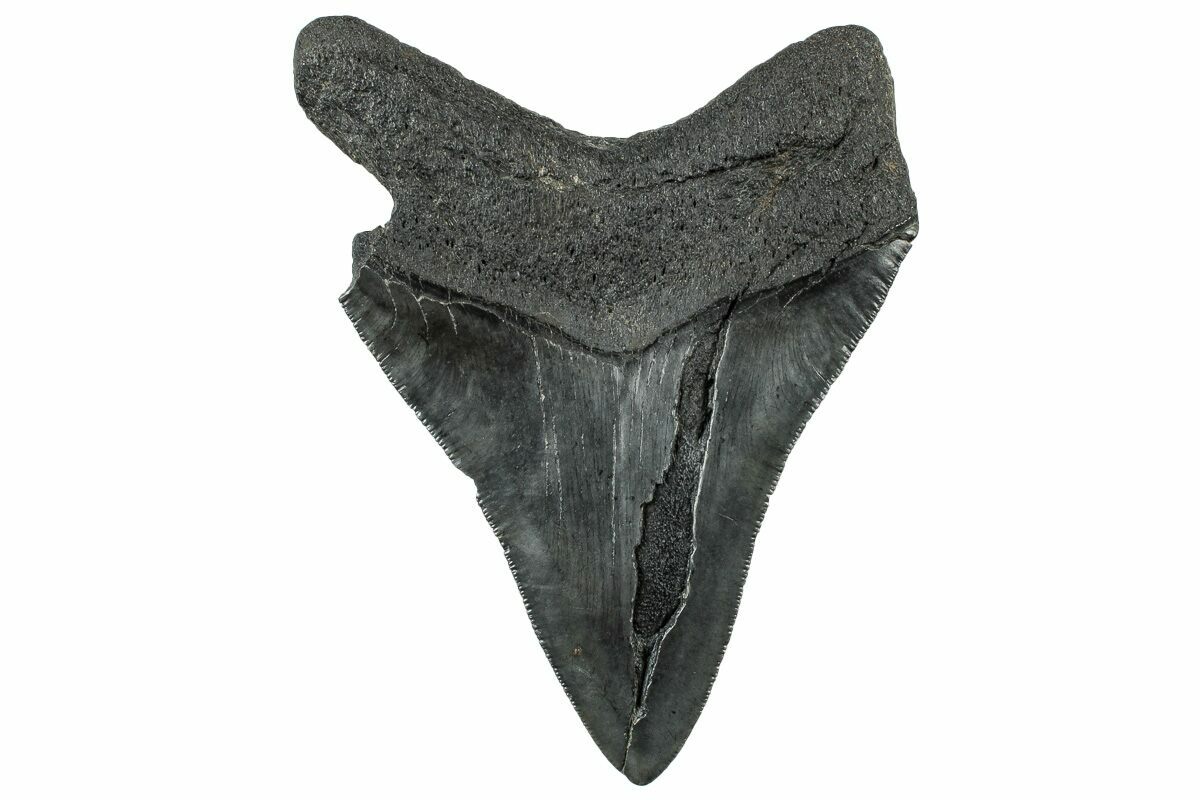 Serrated, 4.40" Fossil Megalodon Tooth - South Carolina
