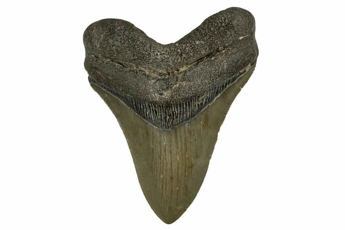 Serrated, 4.42" Fossil Megalodon Tooth - North Carolina