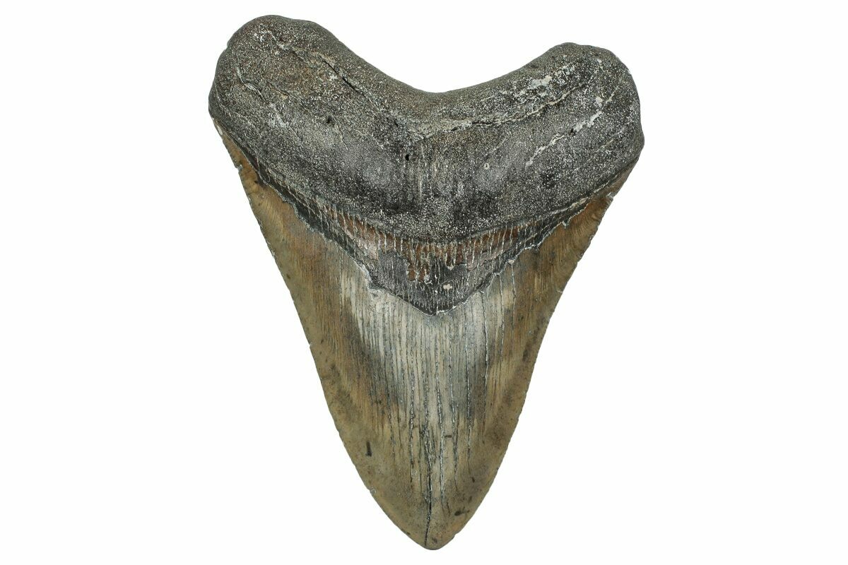Megalodon had a cosmopolitan (global) distribution and its giant teeth can be found in deposits throughout the world. Some are collected on land in phosphate deposits, while many are collected from rivers and coastlines after eroding out of the rocks. This contributes to the water-worn, polished appearance of many teeth.
