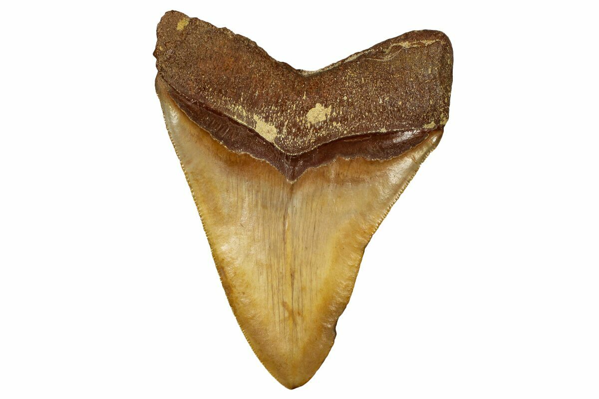 Fossil Megalodon teeth from Morocco are found in Miocene marine sediments exposed in regions like Dakhla and other parts of the country’s fossil-rich terrain, where ancient shallow seas once existed. These Moroccan Meg teeth are not as common as many other shark fossils from the area and are prized when complete because most specimens recover with root erosion, breakage, or repairs, often requiring restoration before they reach collectors. In our experience, roughly 95% of Megalodon teeth on the market from Morocco have been repaired or restored in some way, making truly unrestored examples rare and especially desirable. Compared to southeastern United States localities such as Florida, North Carolina, and South Carolina—where Megalodon teeth are more abundant and frequently found in rivers, beaches, and phosphate gravels—Moroccan teeth are rarer overall and much less frequently encountered intact, particularly in larger sizes.