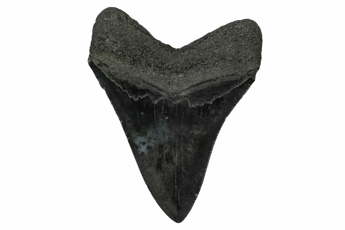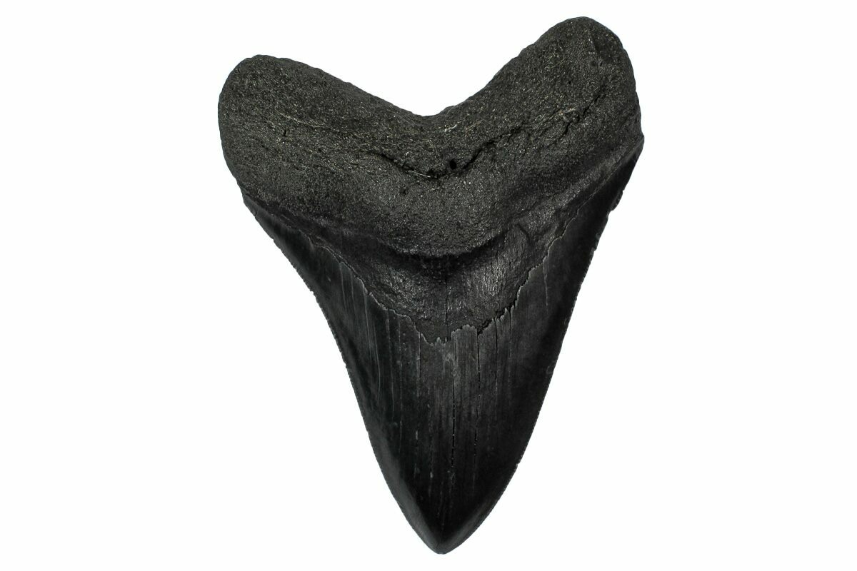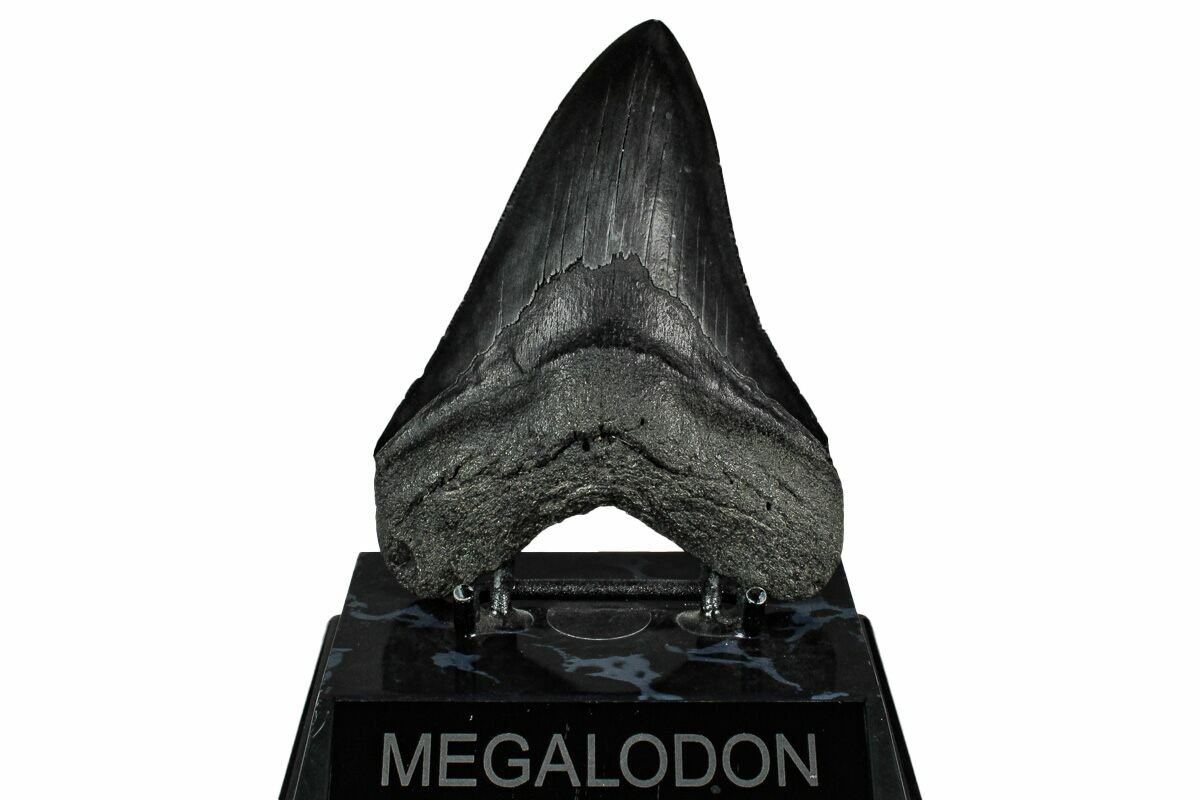 The standard measure for megalodon teeth is slant height, or the longest edge of the tooth. Adult megalodon teeth were typically in the 4 to 5 inch range: teeth over 6 inches are rare and represent super-sized individuals. Only a handful of teeth have ever been found over seven inches.
