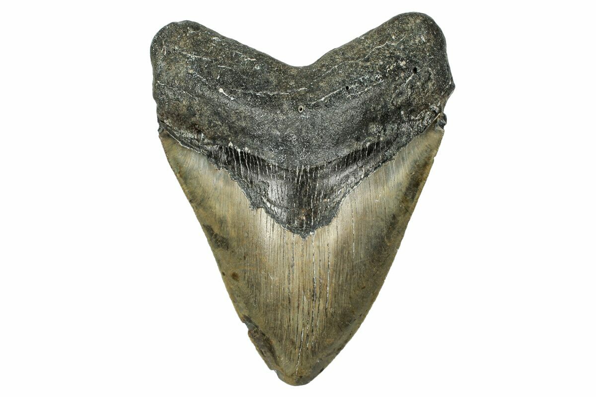 Serrated, 4.61" Fossil Megalodon Tooth - North Carolina
