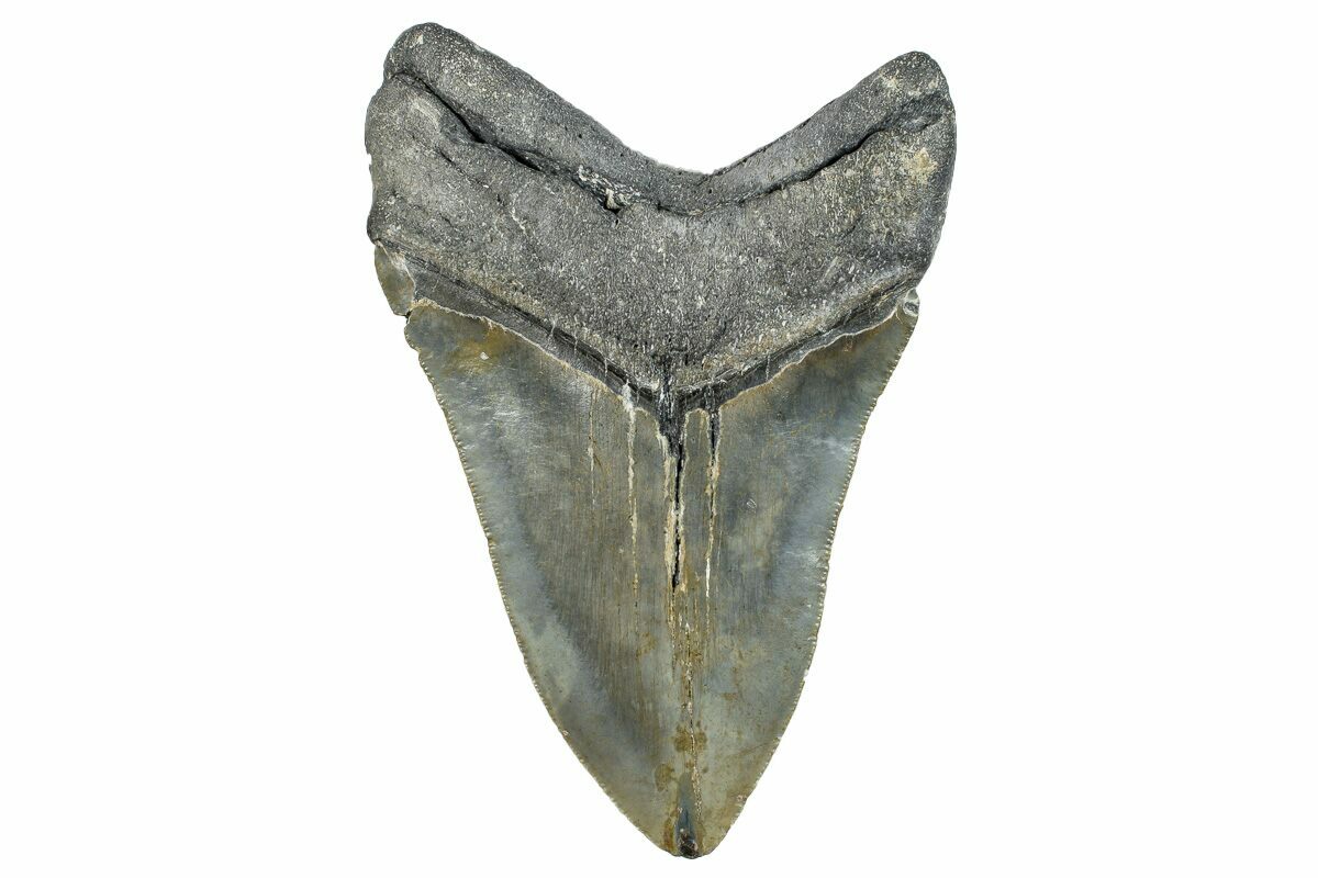 Serrated, 4.66" Fossil Megalodon Tooth - North Carolina