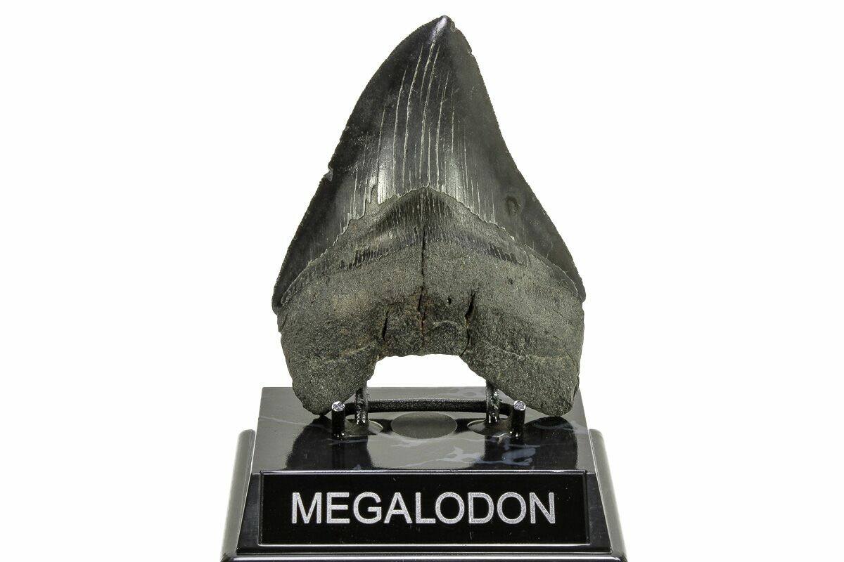 The standard measure for megalodon teeth is slant height, or the longest edge of the tooth. Adult megalodon teeth were typically in the 4 to 5 inch range: teeth over 6 inches are rare and represent super-sized individuals. Only a handful of teeth have ever been found over seven inches.