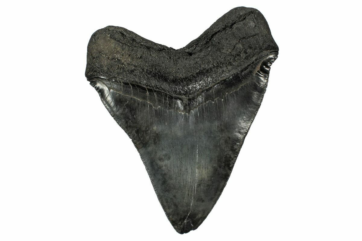 Megalodon had a cosmopolitan (global) distribution and its giant teeth can be found in deposits throughout the world. Some are collected on land in phosphate deposits, while many are collected from rivers and coastlines after eroding out of the rocks. This contributes to the water-worn, polished appearance of many teeth.