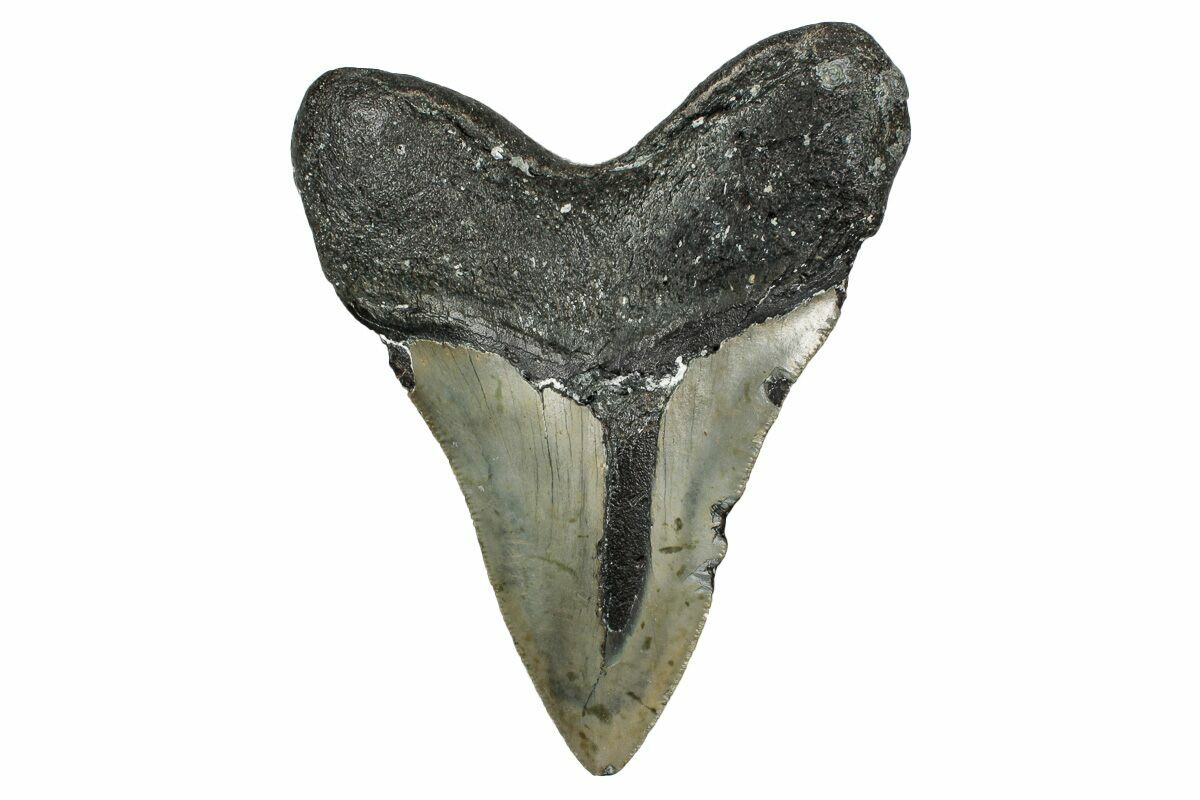 Serrated, 4.89" Fossil Megalodon Tooth - North Carolina