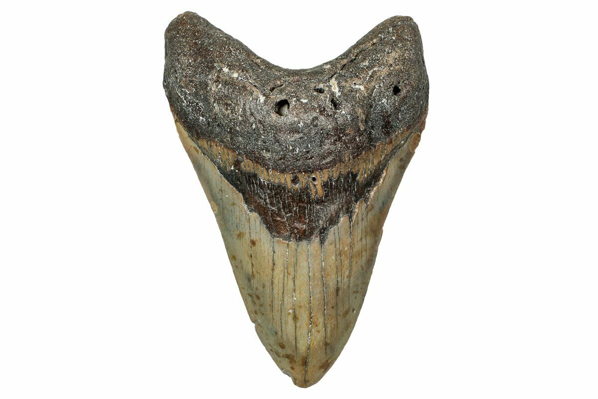 Serrated, 4.94" Fossil Megalodon Tooth - North Carolina