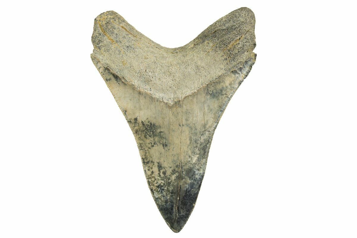 Serrated, 4.95" Fossil Megalodon Tooth - Georgia