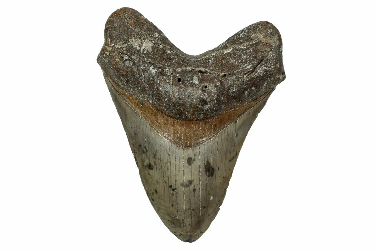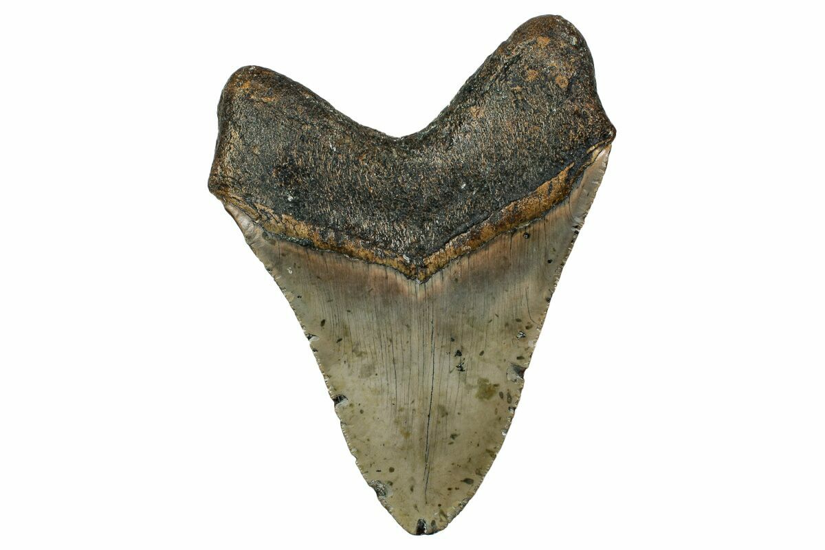 Serrated, 5.10" Fossil Megalodon Tooth - North Carolina.