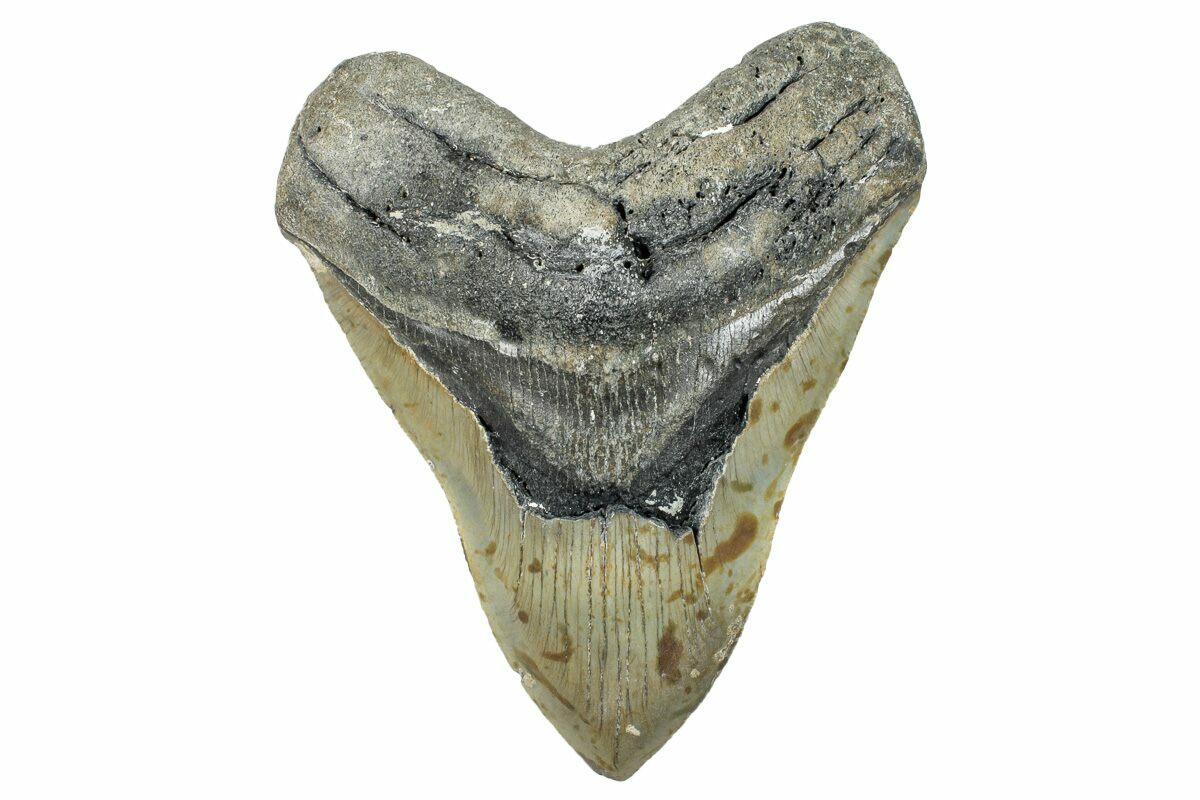 Serrated, 5.02" Fossil Megalodon Tooth - North Carolina