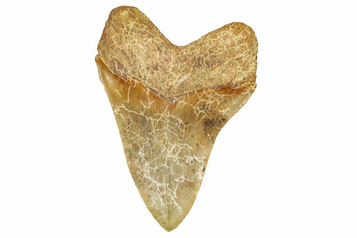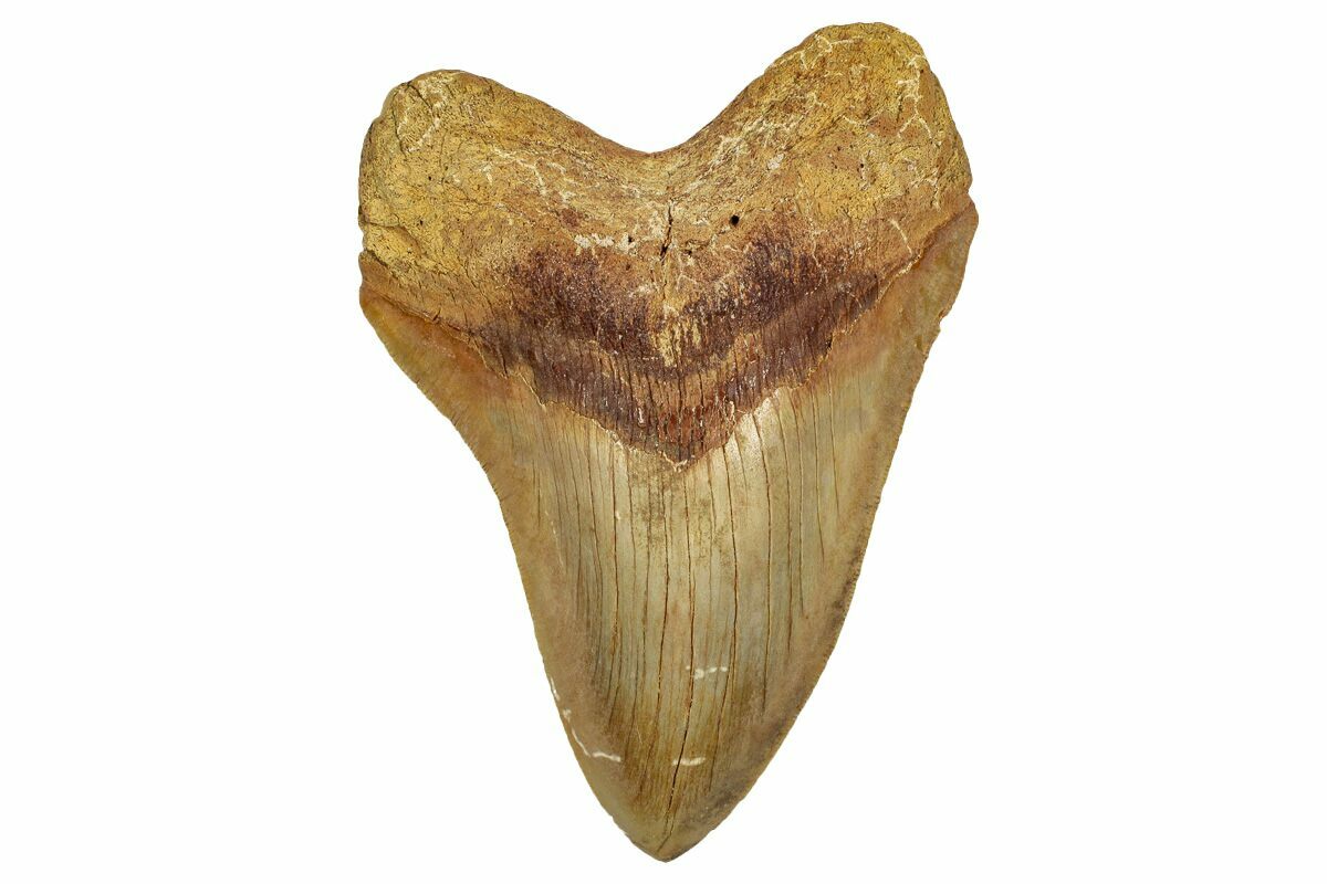 Fossil Megalodon teeth from Morocco are found in Miocene marine sediments exposed in regions like Dakhla and other parts of the country’s fossil-rich terrain, where ancient shallow seas once existed. These Moroccan Meg teeth are not as common as many other shark fossils from the area and are prized when complete because most specimens recover with root erosion, breakage, or repairs, often requiring restoration before they reach collectors. In our experience, roughly 95% of Megalodon teeth on the market from Morocco have been repaired or restored in some way, making truly unrestored examples rare and especially desirable. Compared to southeastern United States localities such as Florida, North Carolina, and South Carolina—where Megalodon teeth are more abundant and frequently found in rivers, beaches, and phosphate gravels—Moroccan teeth are rarer overall and much less frequently encountered intact, particularly in larger sizes.