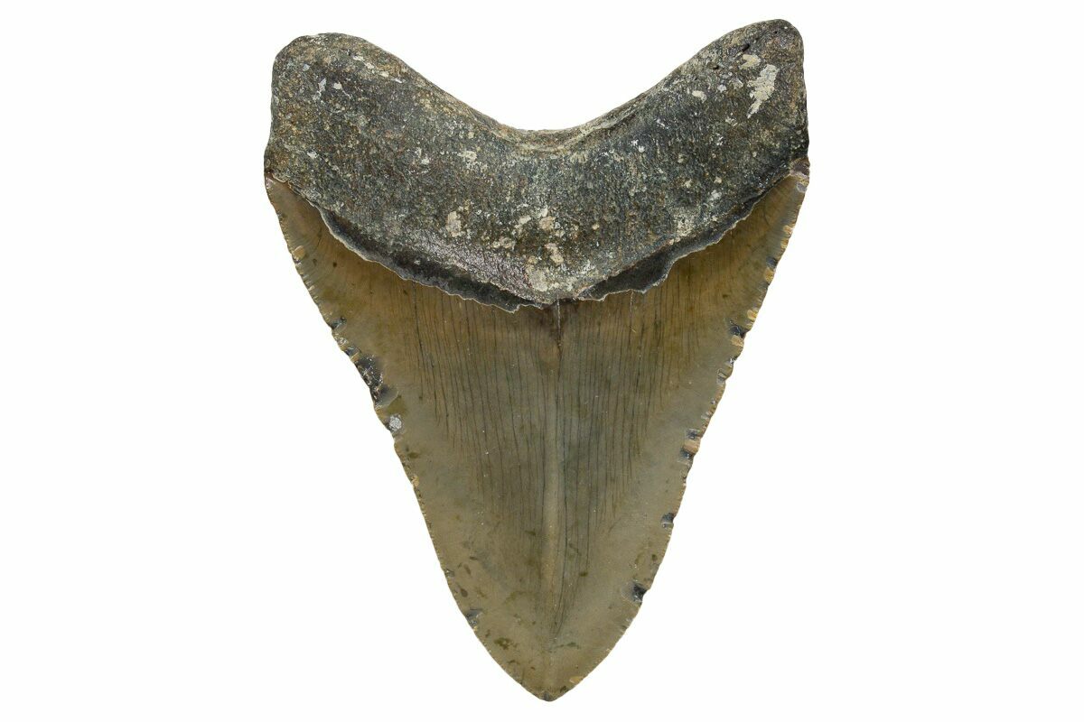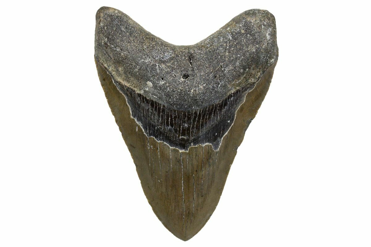 Serrated, 5.19" Fossil Megalodon Tooth - North Carolina.
