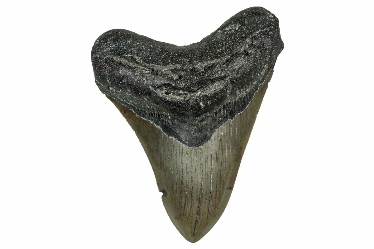 Megalodon had a cosmopolitan (global) distribution and its giant teeth can be found in deposits throughout the world. Some are collected on land in phosphate deposits, while many are collected from rivers and coastlines after eroding out of the rocks. This contributes to the water-worn, polished appearance of many teeth.