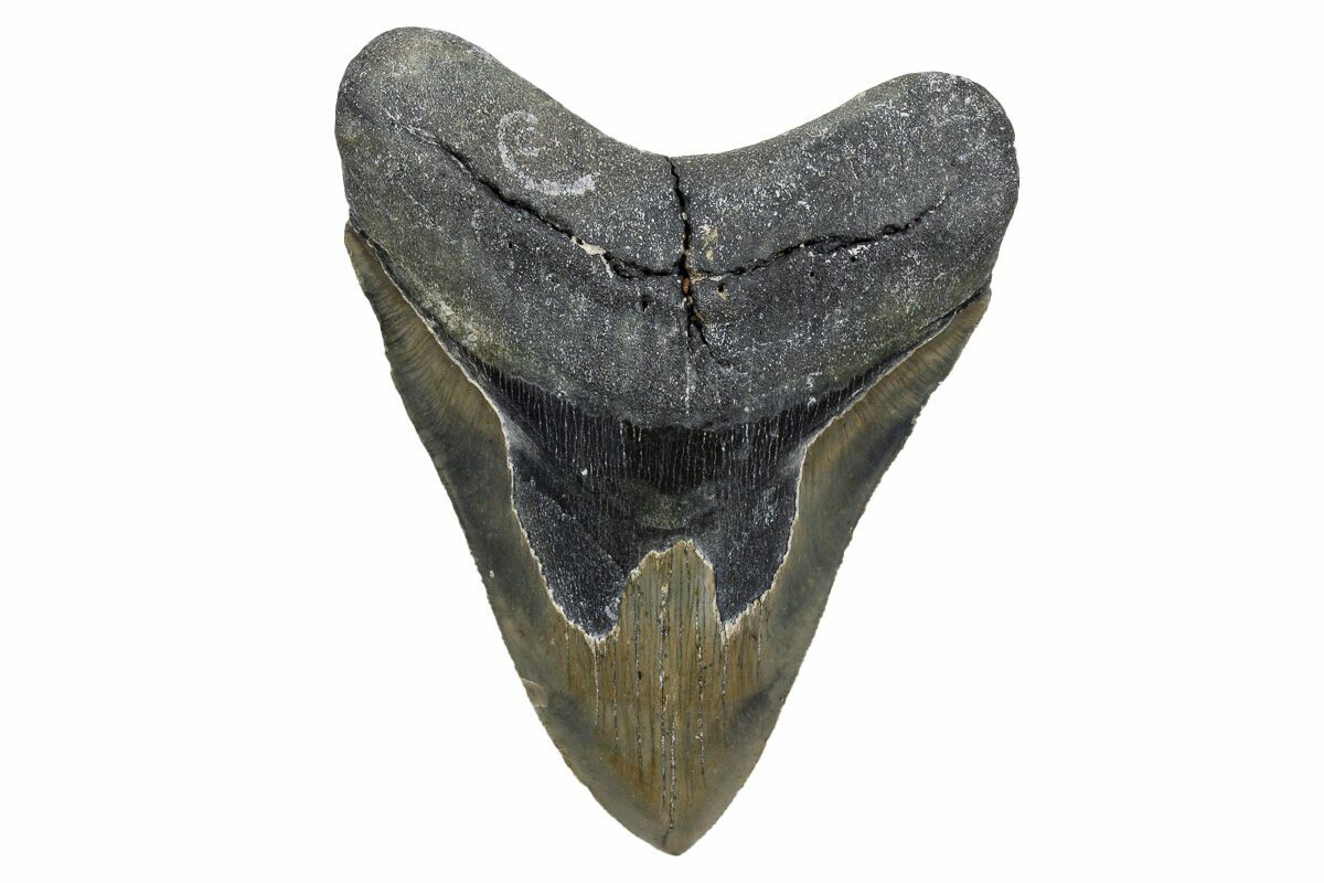 Serrated, 5.31" Fossil Megalodon Tooth - North Carolina.