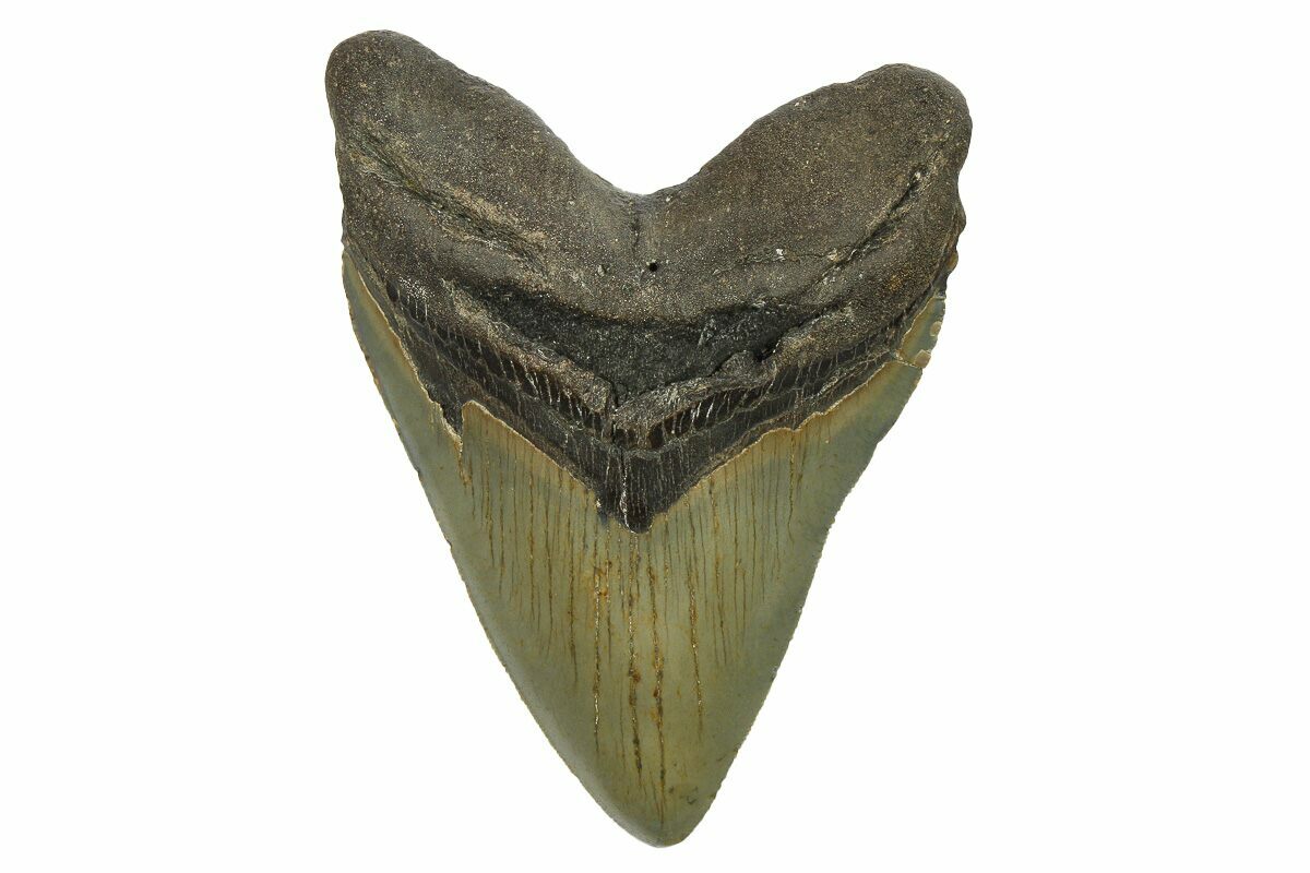 Serrated, 5.35" Fossil Megalodon Tooth - North Carolina