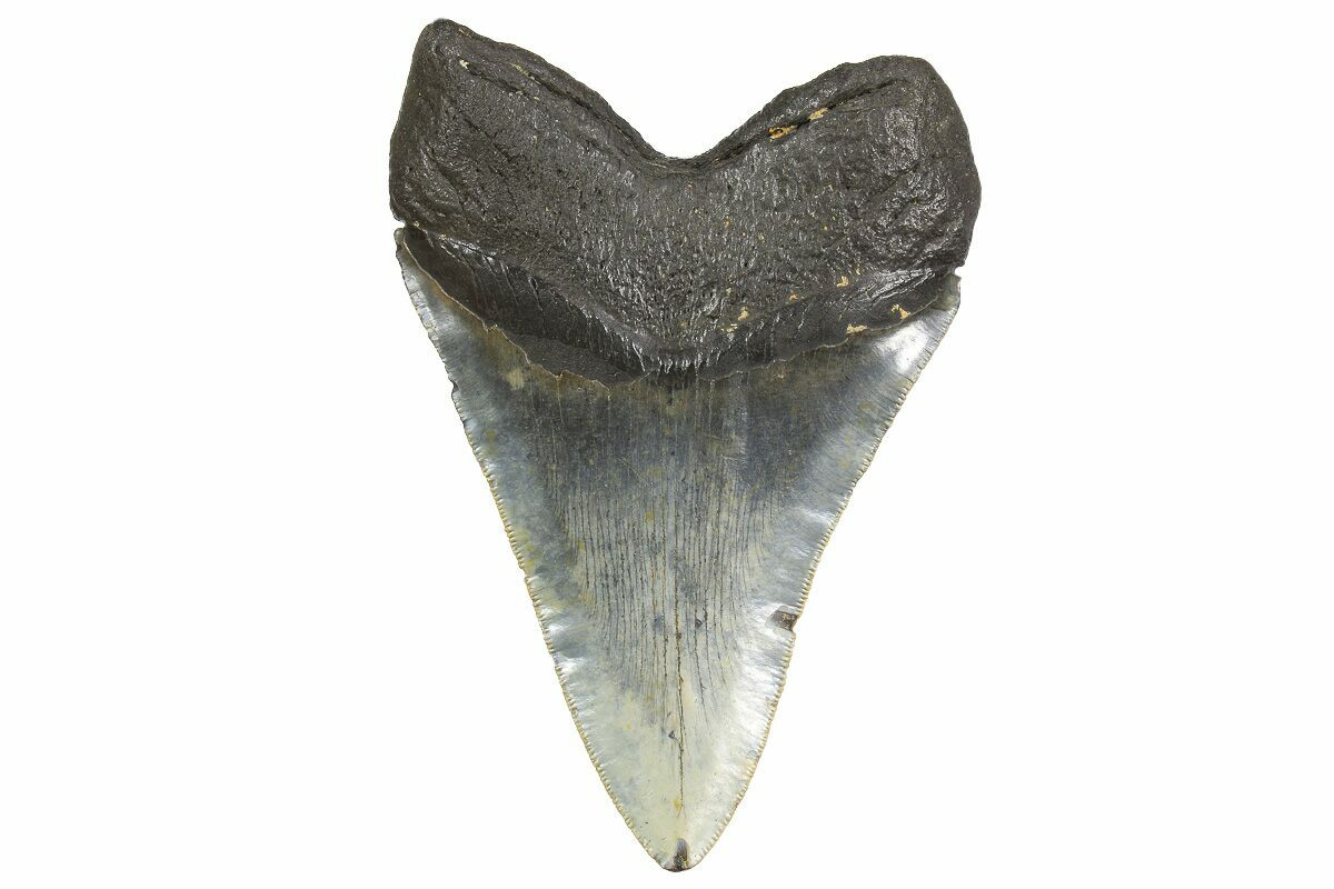 Megalodon had a cosmopolitan (global) distribution and its giant teeth can be found in deposits throughout the world. Some are collected on land in phosphate deposits, while many are collected from rivers and coastlines after eroding out of the rocks. This contributes to the water-worn, polished appearance of many teeth.