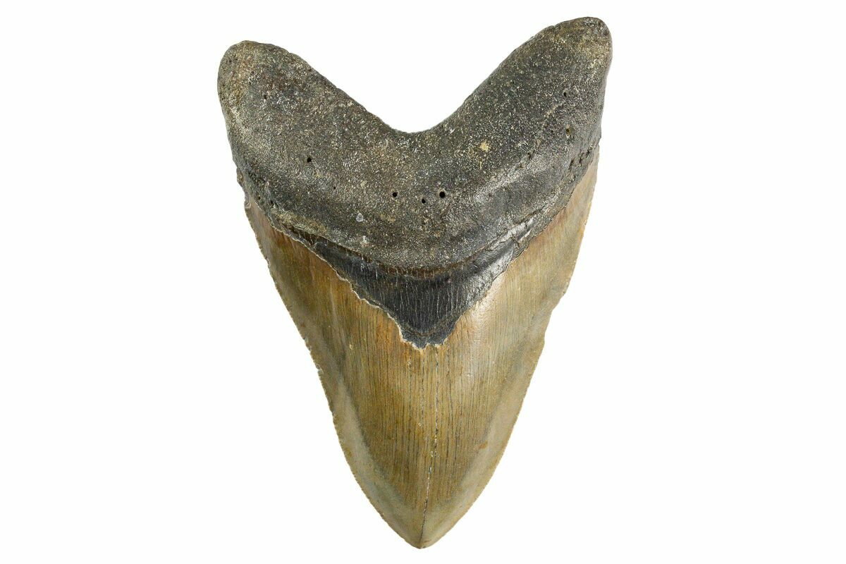 Serrated, 5.39" Fossil Megalodon Tooth - North Carolina.
