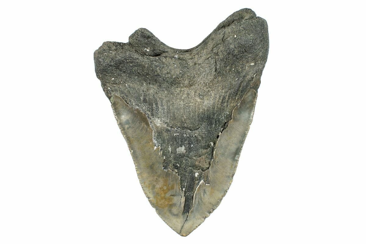 Serrated, 5.86" Fossil Megalodon Tooth - Huge NC Meg