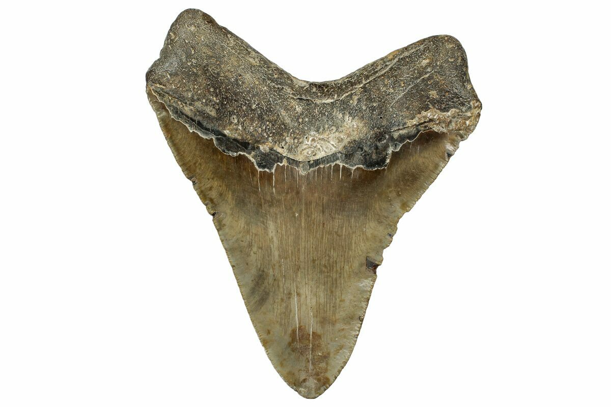Megalodon had a cosmopolitan (global) distribution and its giant teeth can be found in deposits throughout the world. Some are collected on land in phosphate deposits, while many are collected from rivers and coastlines after eroding out of the rocks. This contributes to the water-worn, polished appearance of many teeth.