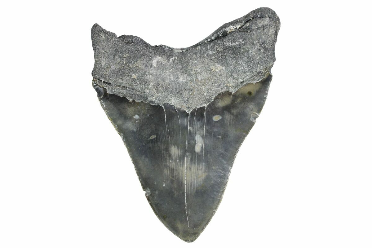 Megalodon had a cosmopolitan (global) distribution and its giant teeth can be found in deposits throughout the world. Some are collected on land in phosphate deposits, while many are collected from rivers and coastlines after eroding out of the rocks. This contributes to the water-worn, polished appearance of many teeth.