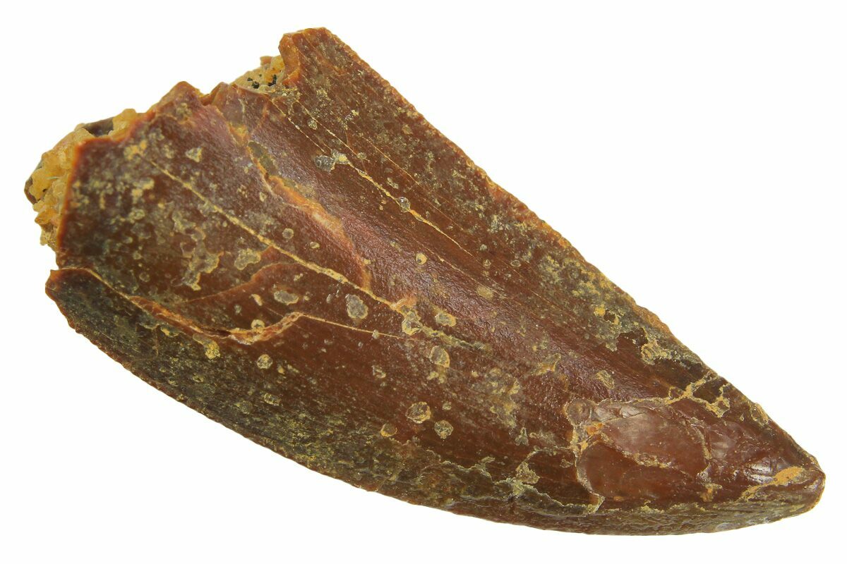 This is an authentic dinosaur tooth from the Late Cretaceous Kem Kem Beds (formerly Tegana Formation) of Morocco. These small theropod dinosaurs from the Tegana Formation have yet to be described, primarily due to a lack of articulated bone material found in the formation. That means it is impossible to provide a species or even genus ID from these teeth alone.
