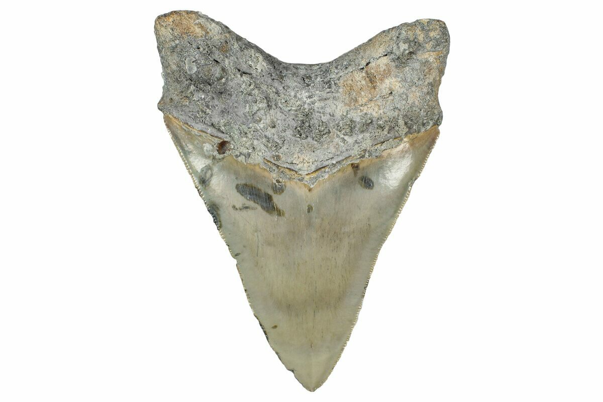Megalodon had a cosmopolitan (global) distribution and its giant teeth can be found in deposits throughout the world. Some are collected on land in phosphate deposits, while many are collected from rivers and coastlines after eroding out of the rocks. This contributes to the water-worn, polished appearance of many teeth.