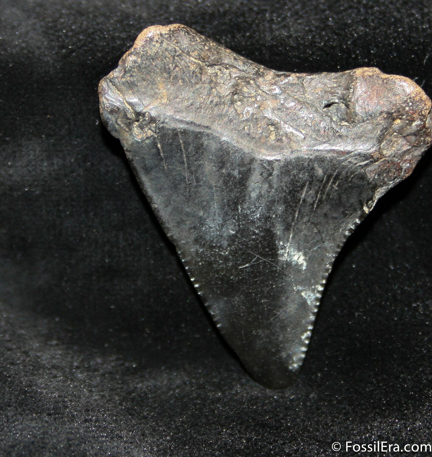 Megalodon had a cosmopolitan (global) distribution and its giant teeth can be found in deposits throughout the world. Some are collected on land in phosphate deposits, while many are collected from rivers and coastlines after eroding out of the rocks. This contributes to the water-worn, polished appearance of many teeth.