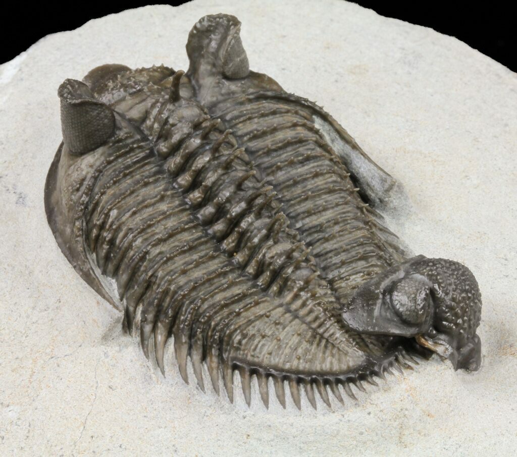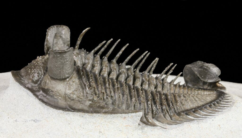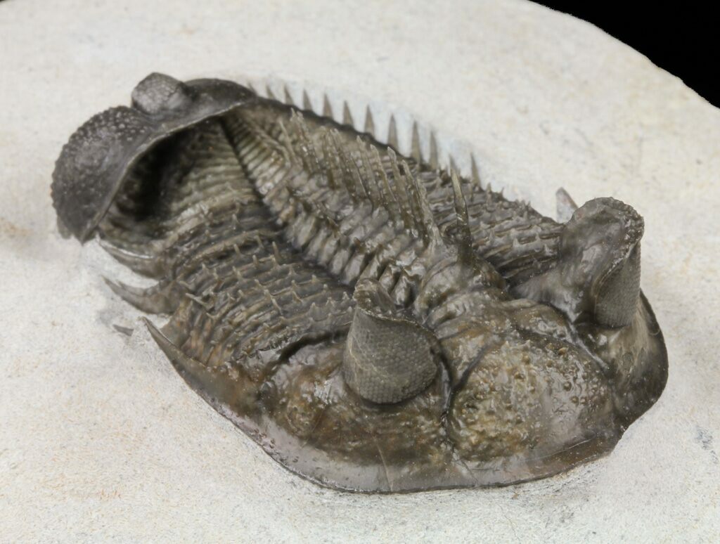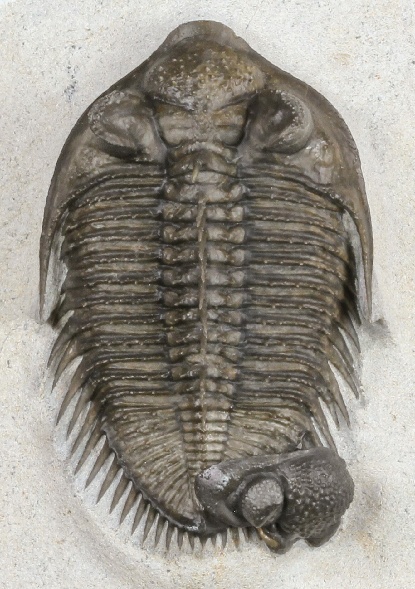 The detail is stunning, with excellent eye facet preservation in both eyes, and not only the axial spines free standing but the dozens upon dozens of tiny spines covering the thorax and tail are preserved. They don't get any nicer than this.
