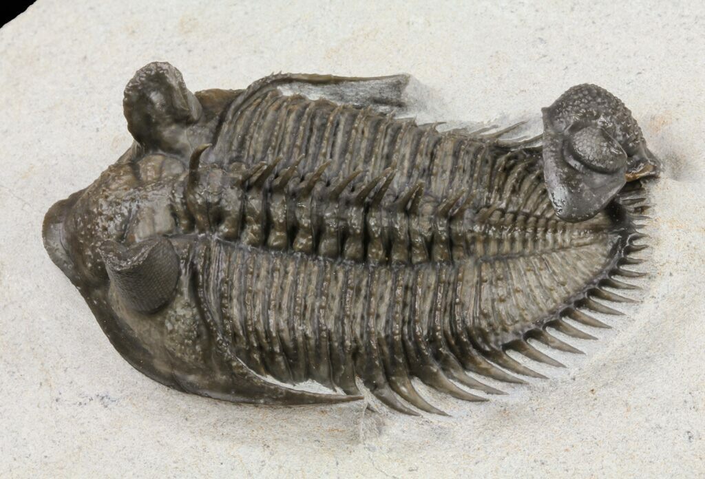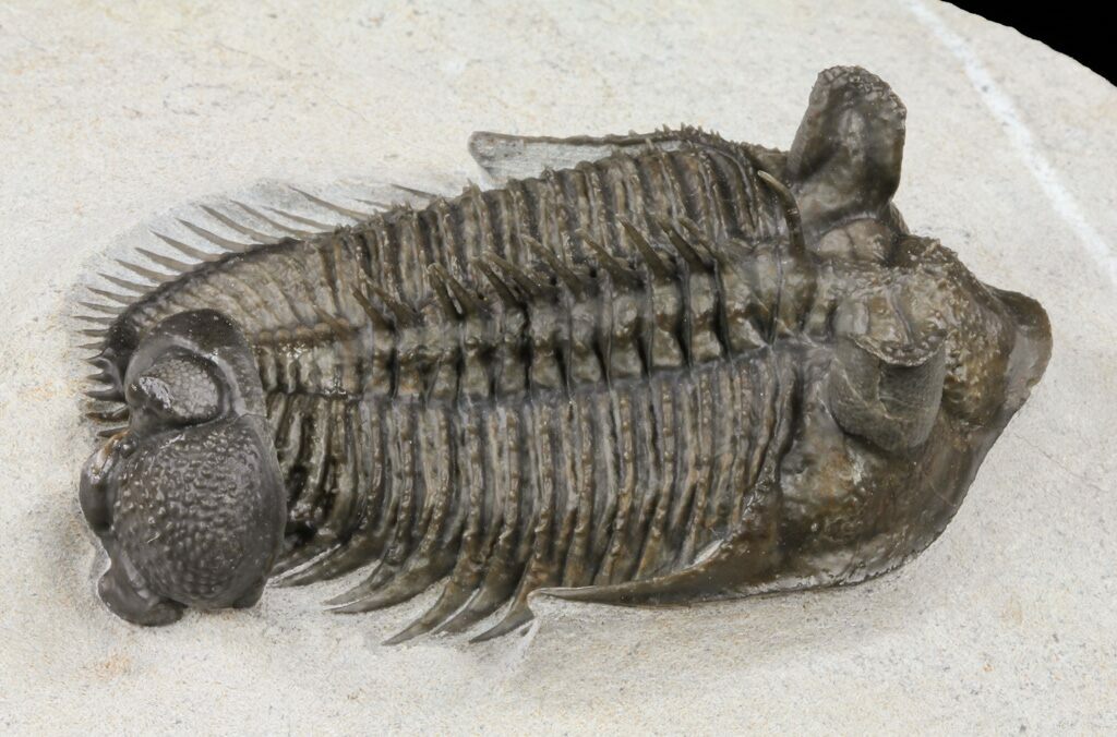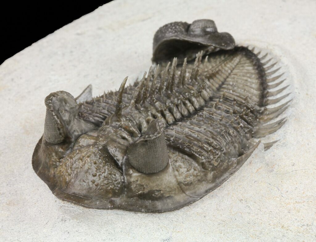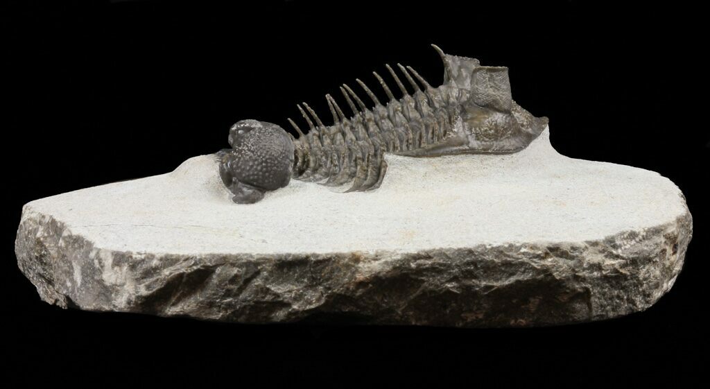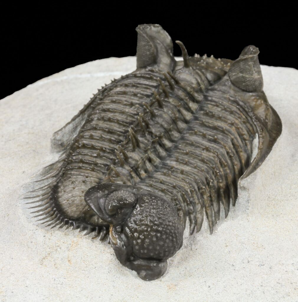 The detail is stunning, with excellent eye facet preservation in both eyes, and not only the axial spines free standing but the dozens upon dozens of tiny spines covering the thorax and tail are preserved. They don't get any nicer than this.