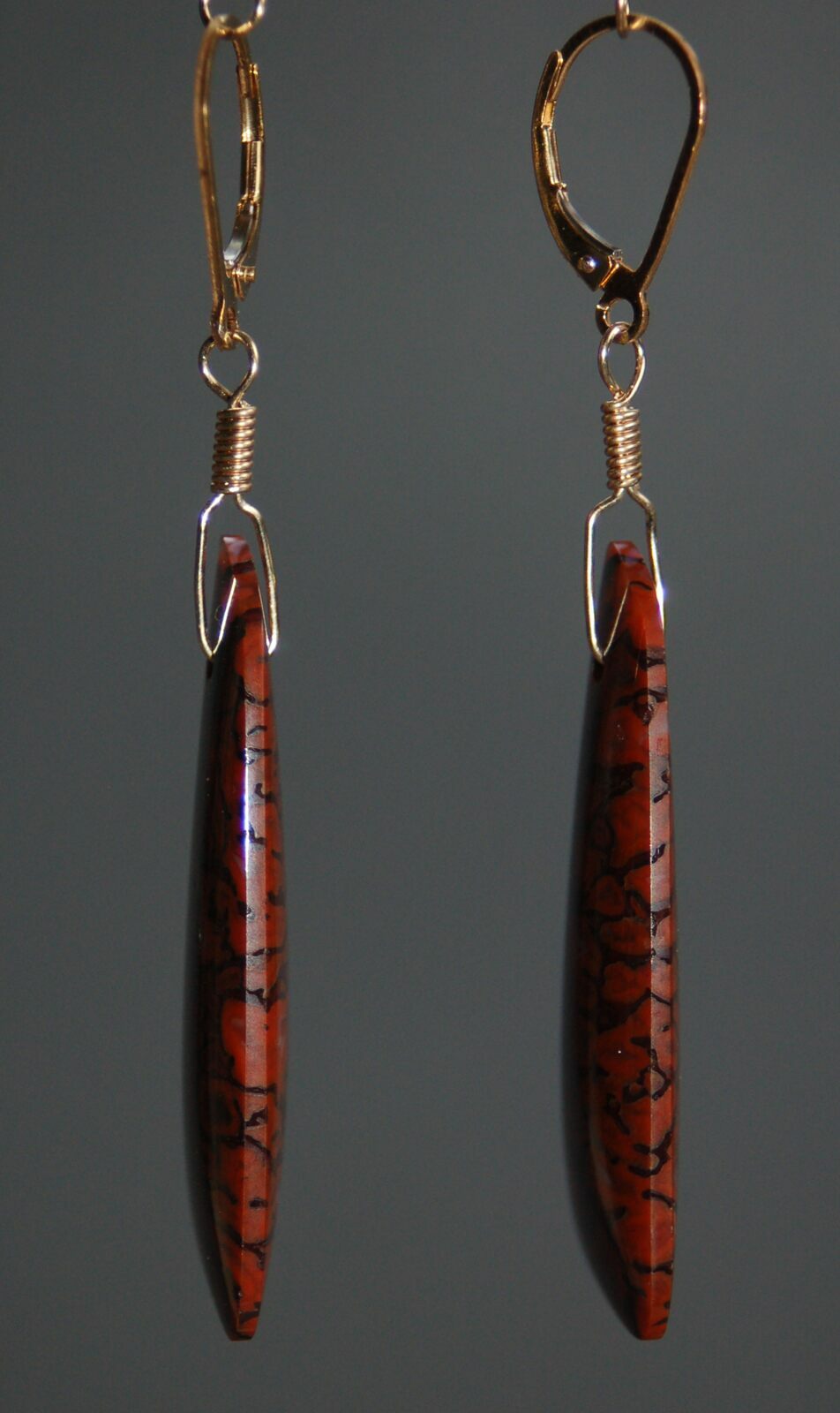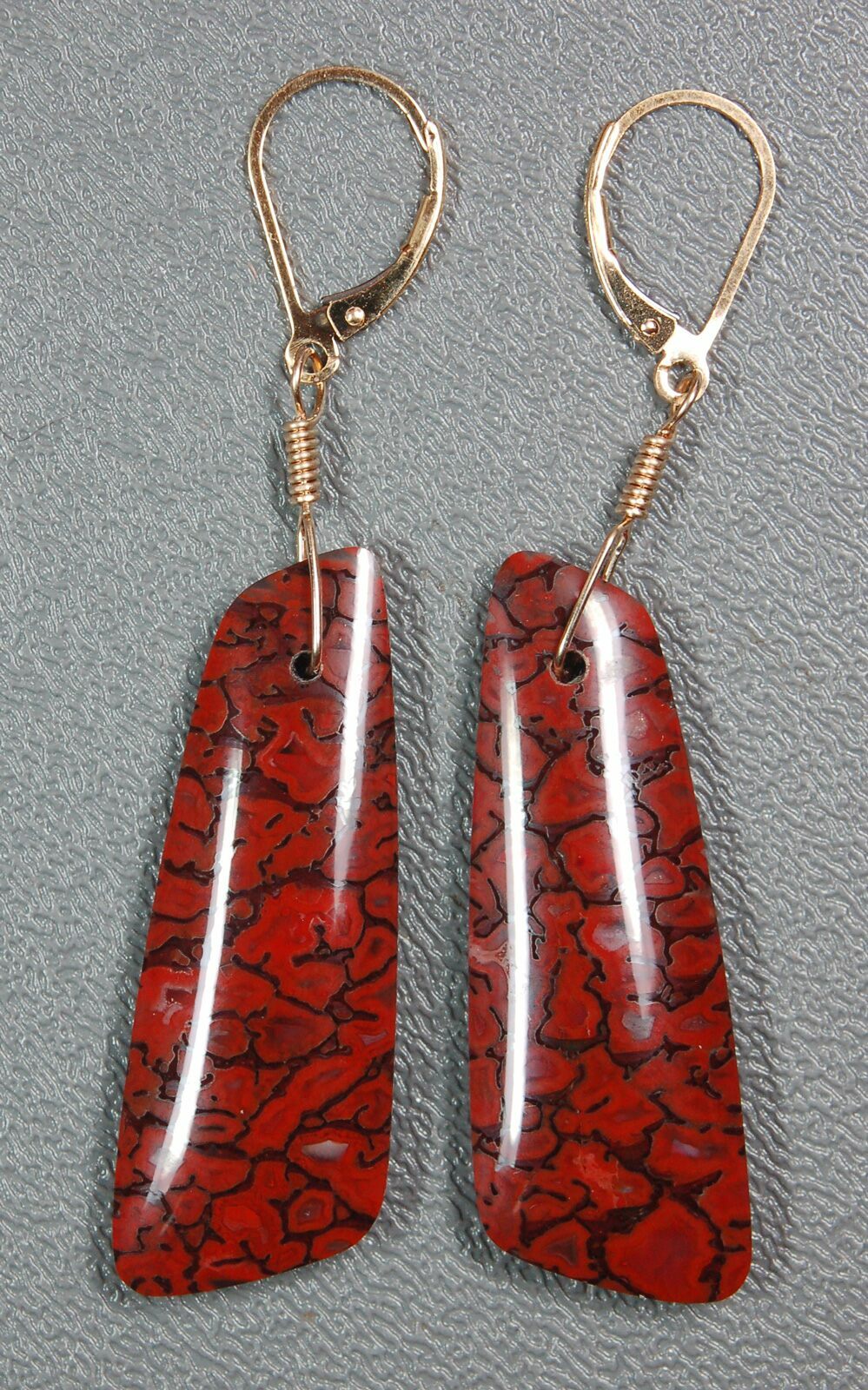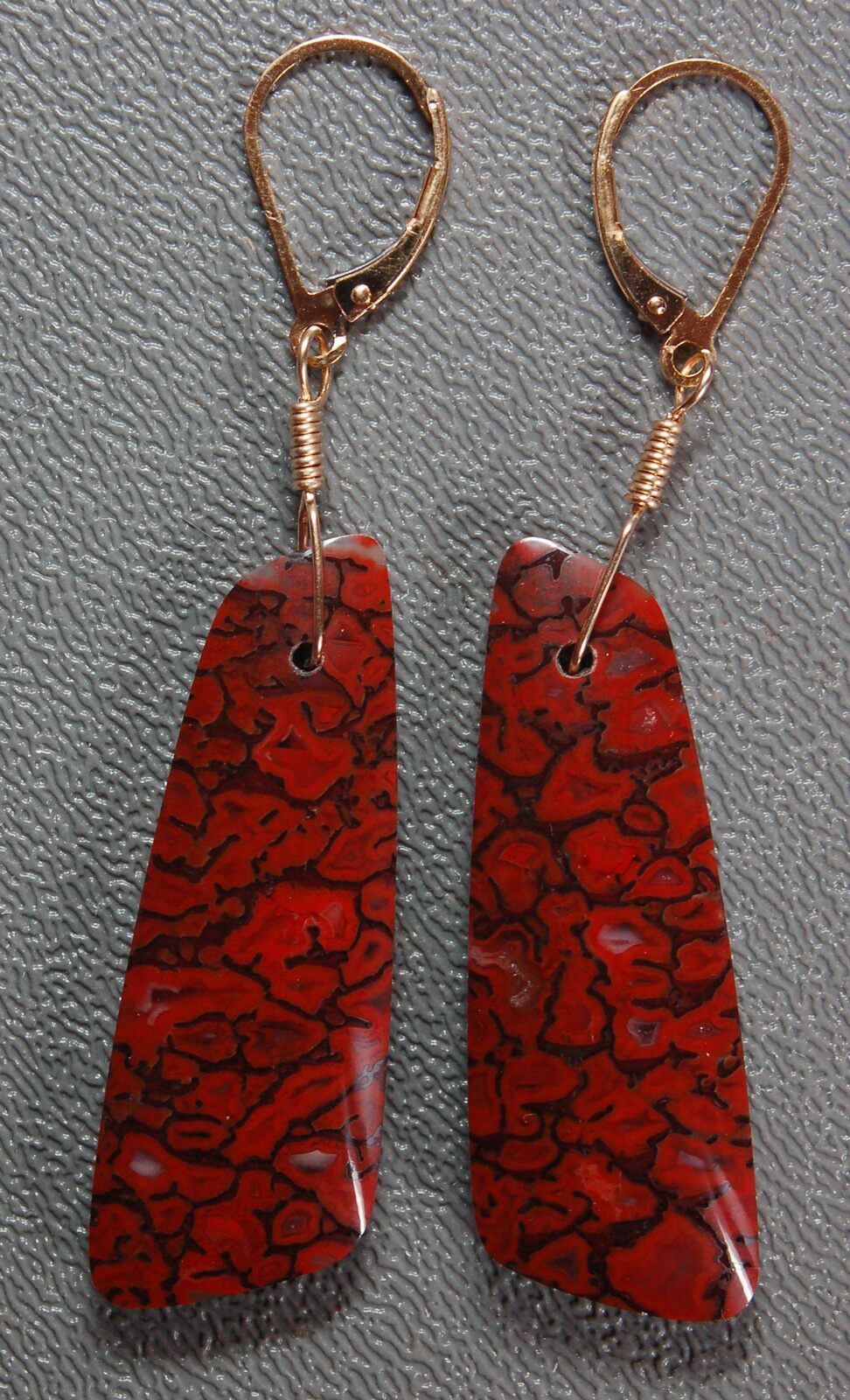 Stunning, Red Dinosaur Gembone Earrings - Gold Findings