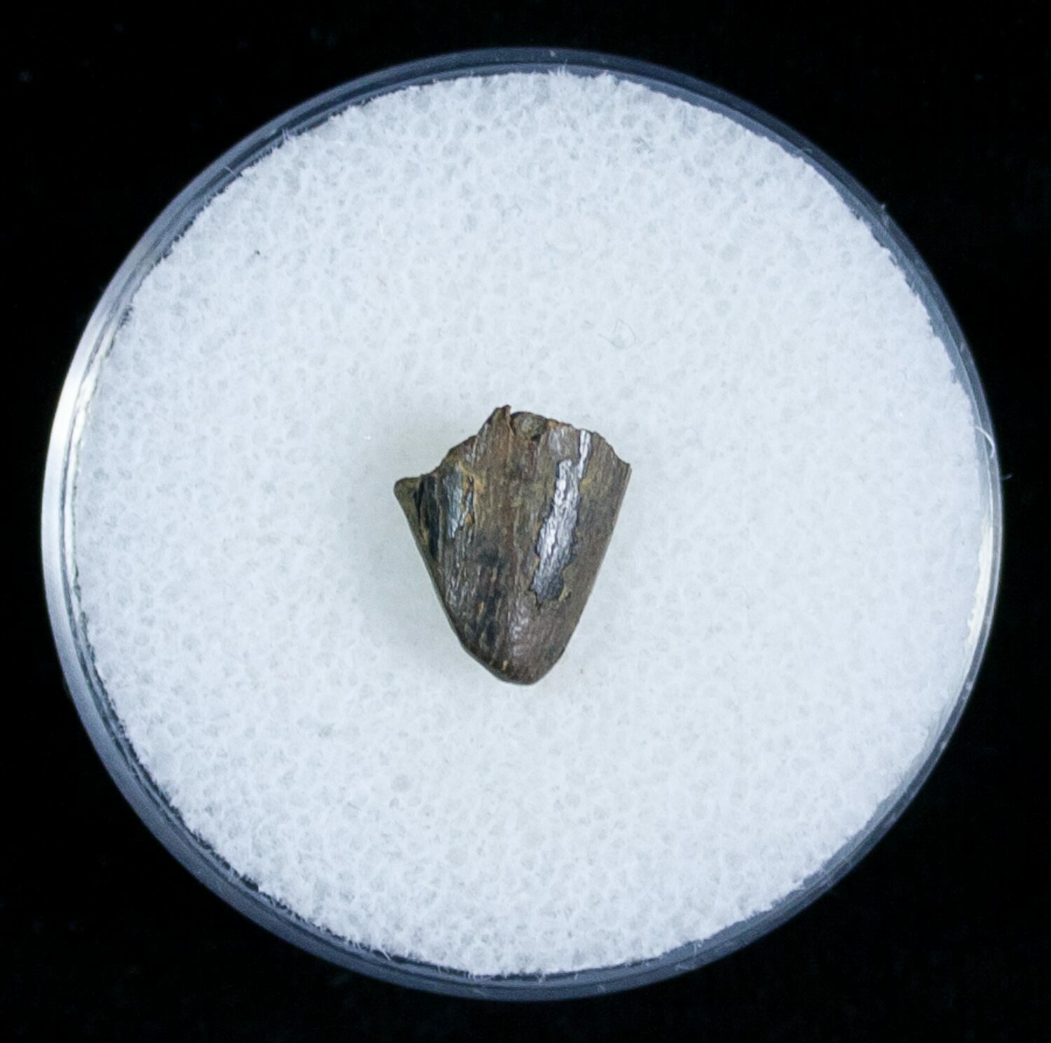 This is a partial tooth tip of a Tyrannosaurus tooth. Simply due to the size of tooth this came from it could be none other than from a large Tyrannosaurus rex tooth. It comes in an acrylic display case.