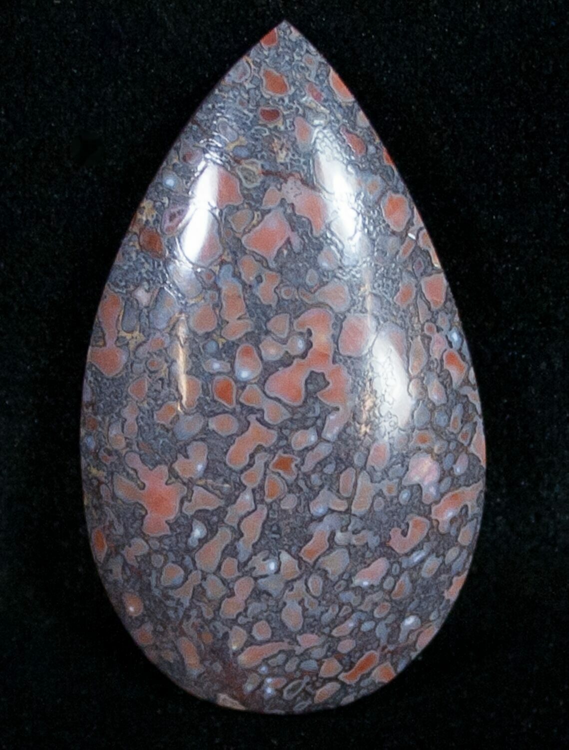 This is a beautiful cab of agatized dinosaur bone, ready to be made into jewelry. The polishing allows the internal cell structure of the bone to be easily seen. Agatized dinosaur bone is a rare form of fossilized dinosaur bone where the original fossilized bone has been re-mineralized (replaced) with silica based compounds (agate, jasper, chalcedony, or opal).