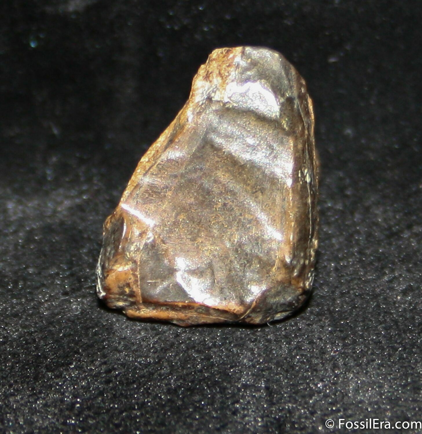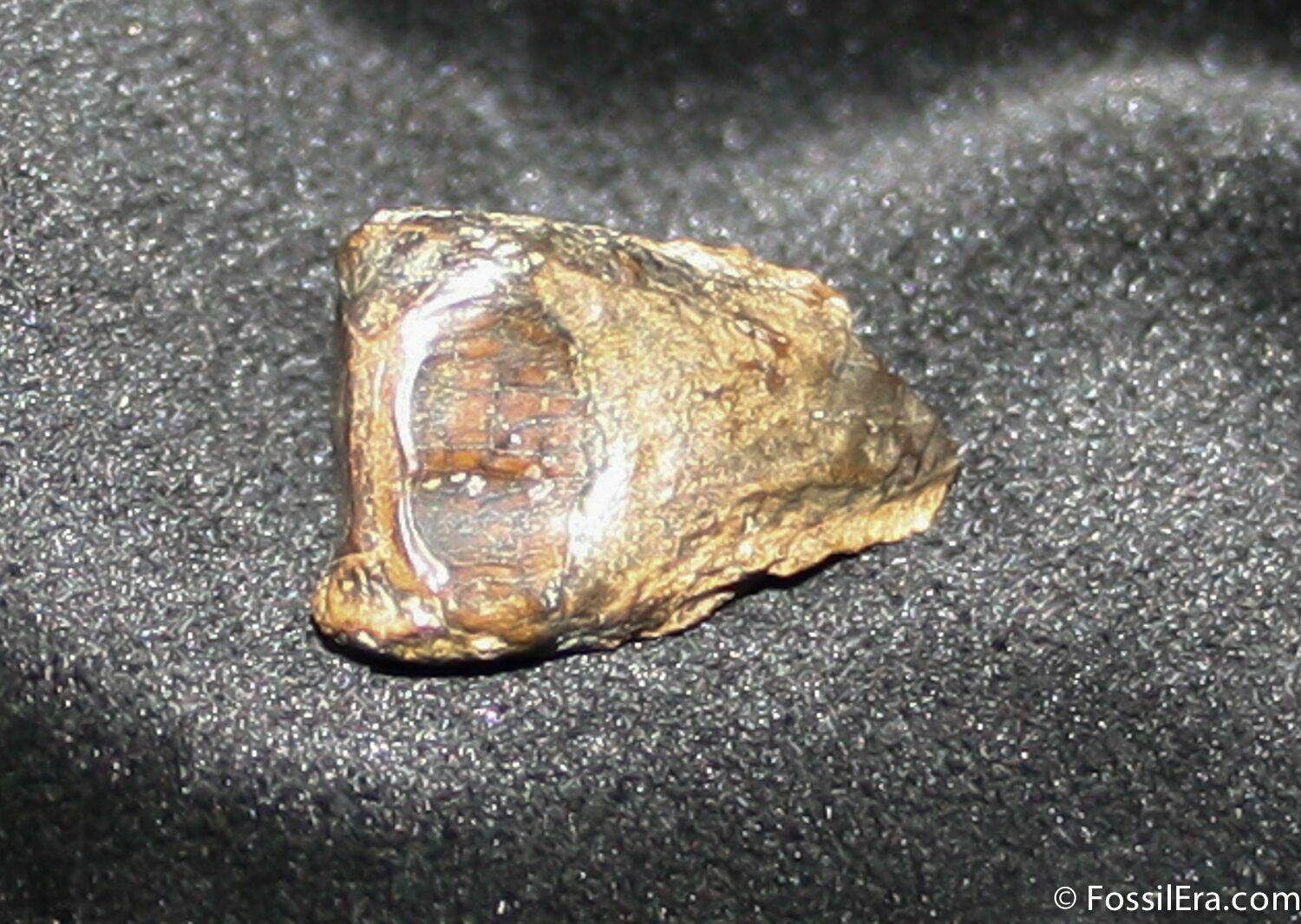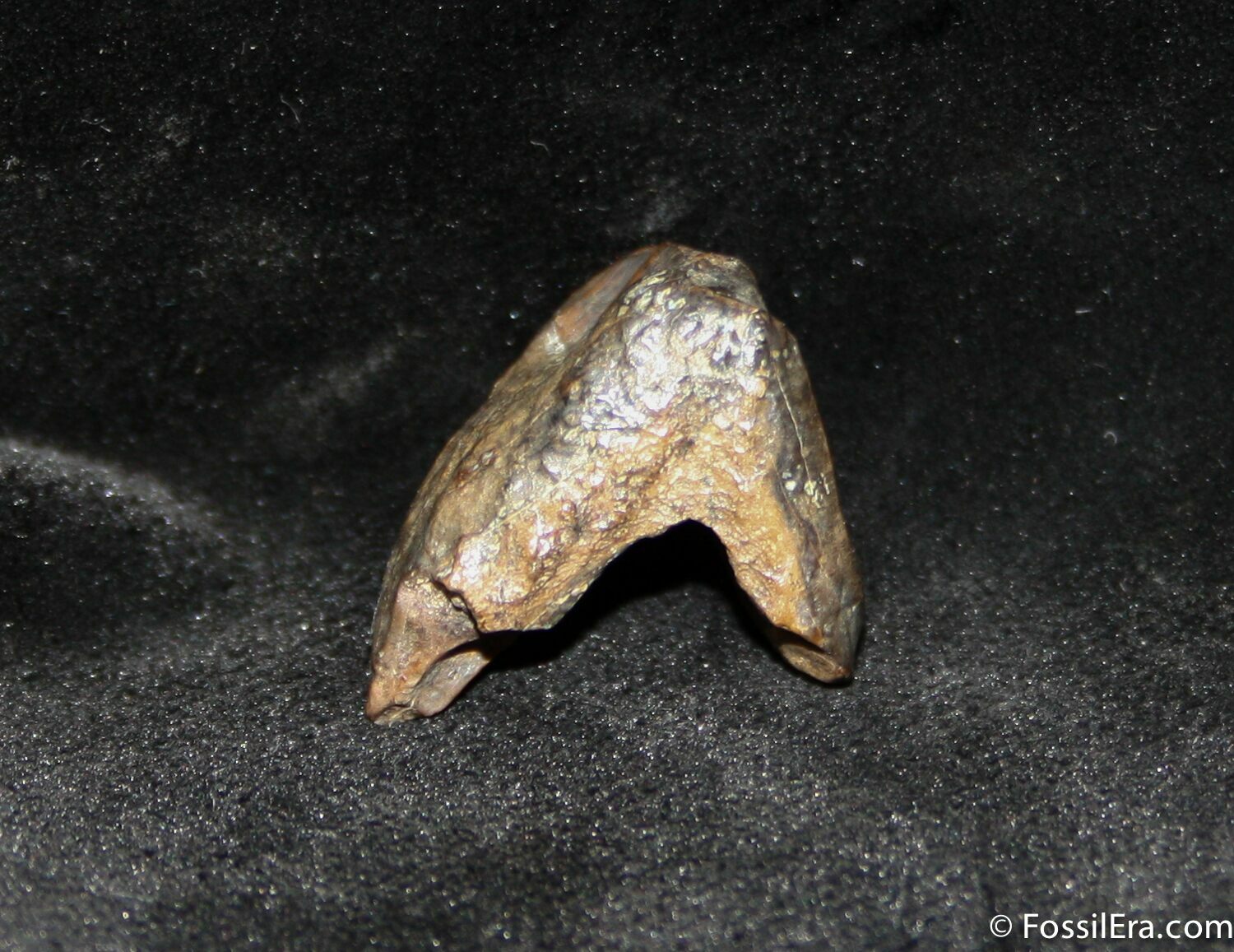 Here's a real tooth from one of the most iconic dinosaurs, Triceratops. It was collected in the 66 million year old, Hell Creek Formation of Montana. Triceratops had a massive battery of teeth in their mouth for chewing the rough vegetation that made up their diet. They shed these teeth during their lifetime and collectors often refer to these teeth as "spitters".