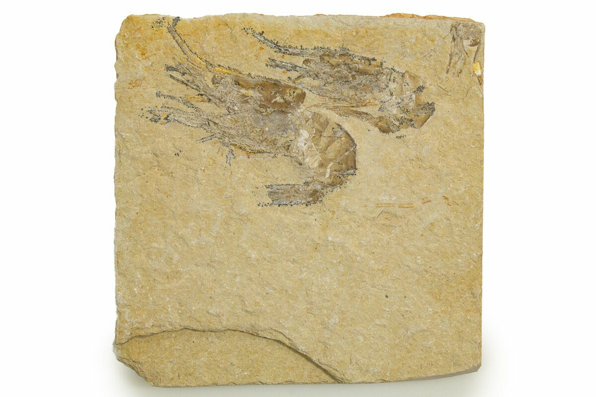 These are two fossil shrimp from Hjoula, Lebanon. The largest shrimp is 1.85" long. The fossils have preserved carapaces and legs.
