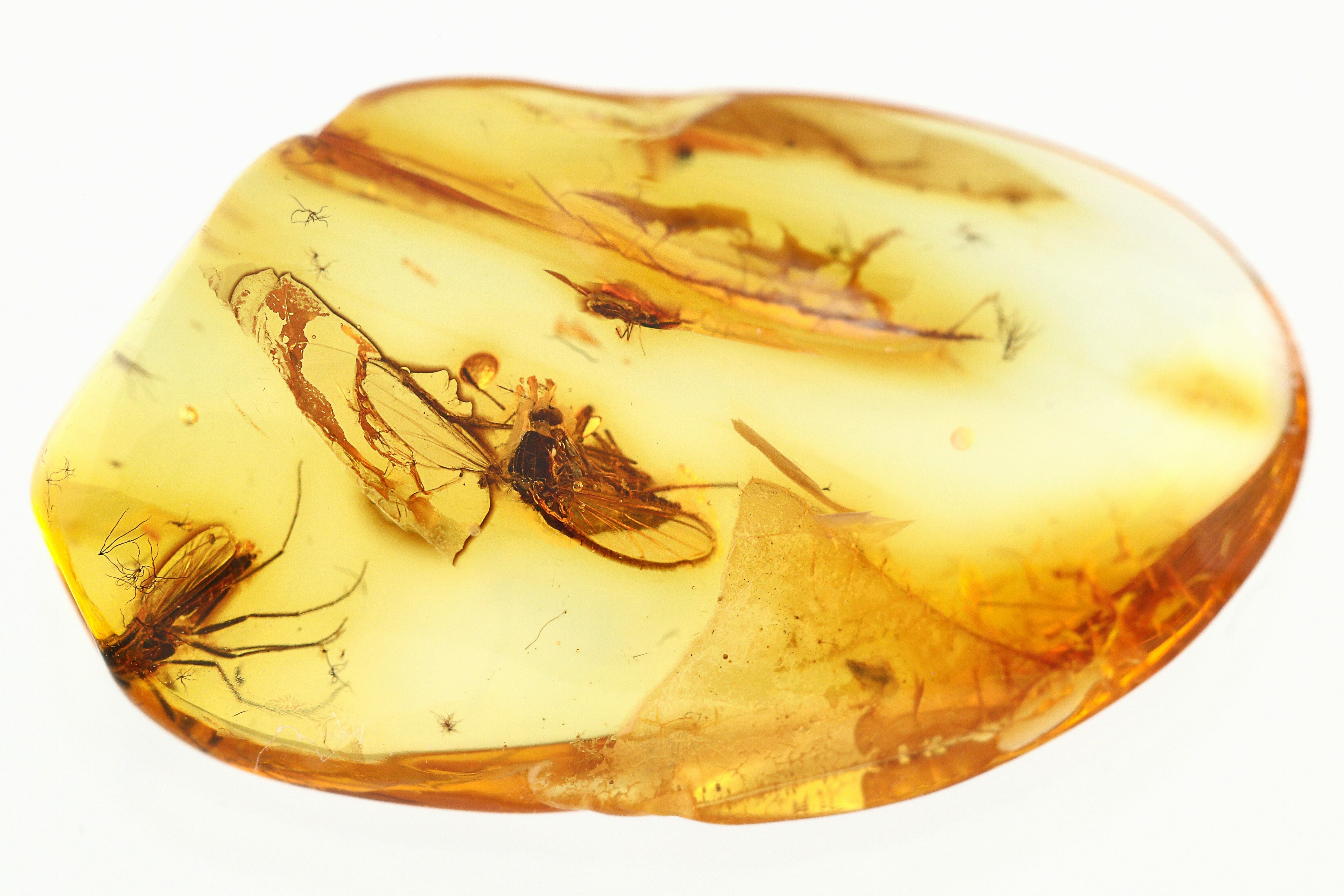 Buyer Beware: The market is flooded with fake amber, which is often plastics with insects embedded in it. The insect inclusions in amber are almost always tiny. Larger insects are able to struggle free and are not preserved. If you see something that looks too good to be true, it often is. Make sure to buy from a reputable dealer.