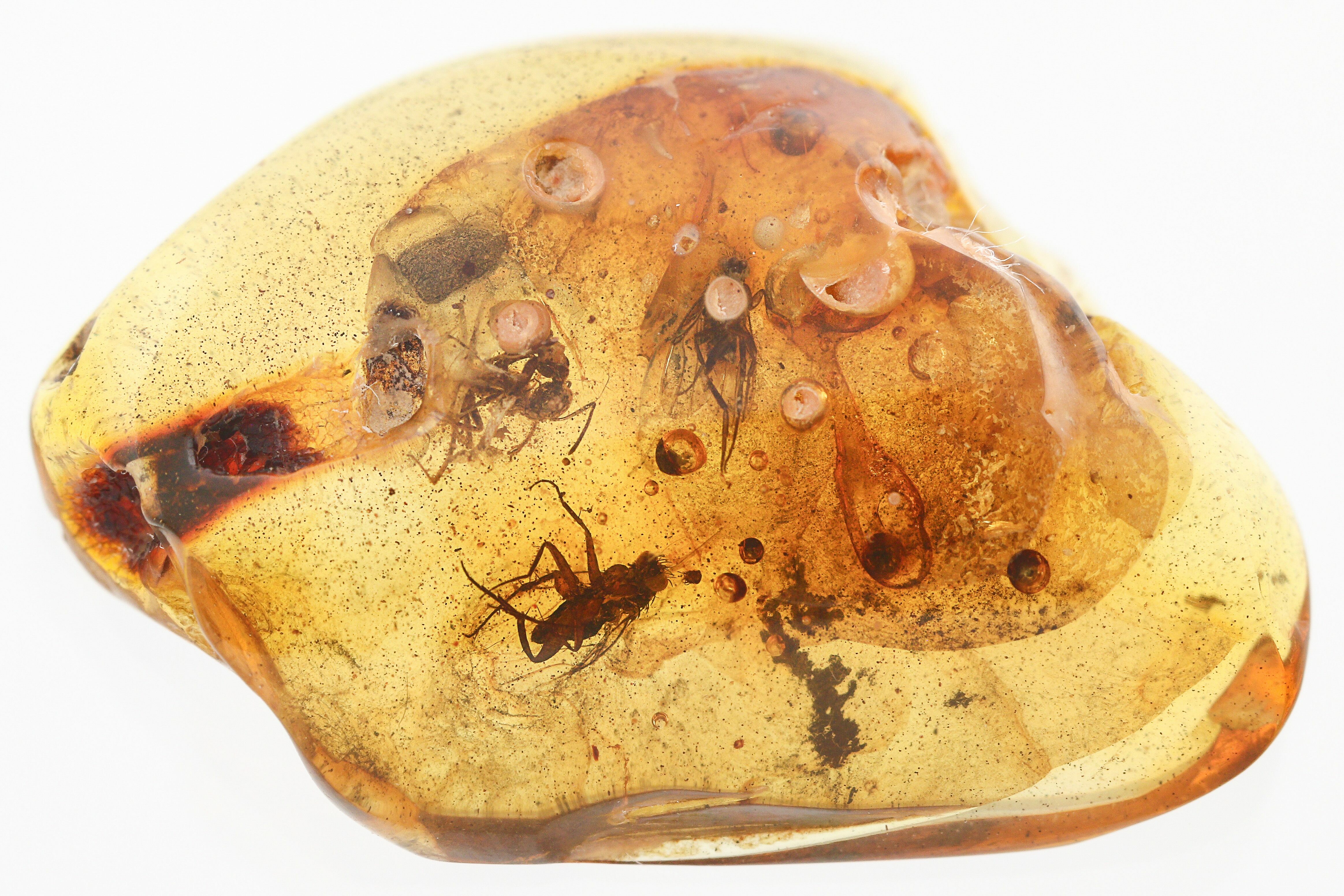 Buyer Beware: The market is flooded with fake amber, which is often plastics with insects embedded in it. The insect inclusions in amber are almost always tiny. Larger insects are able to struggle free and are not preserved. If you see something that looks too good to be true, it often is. Make sure to buy from a reputable dealer.
