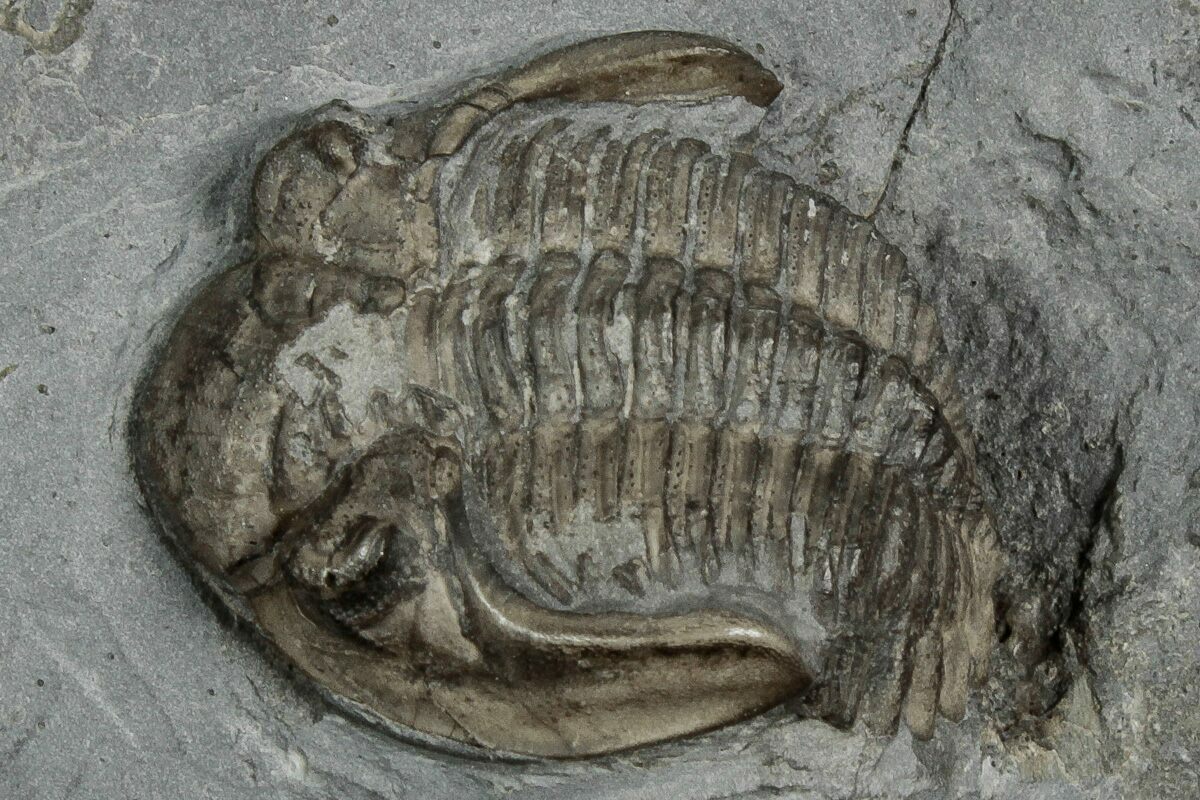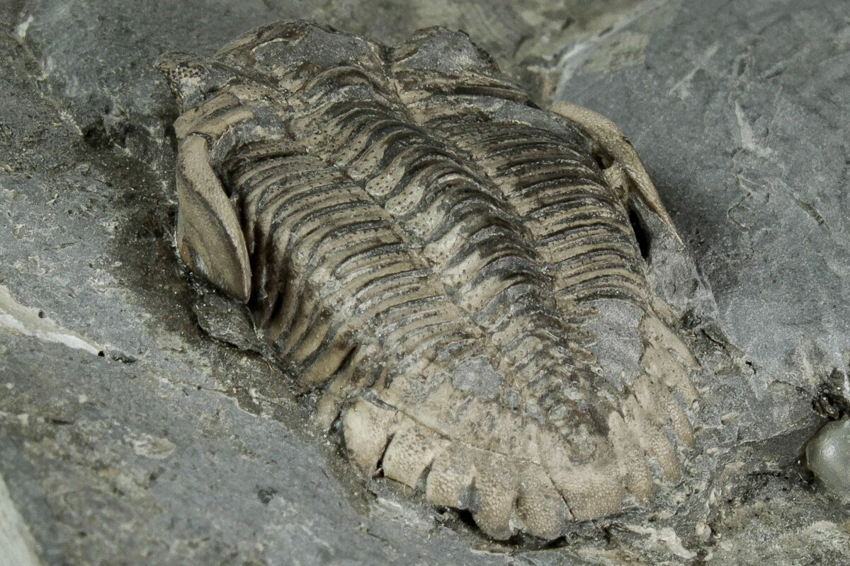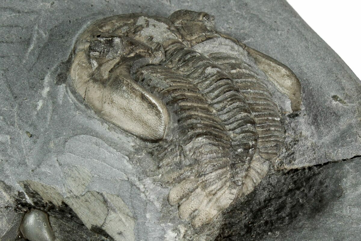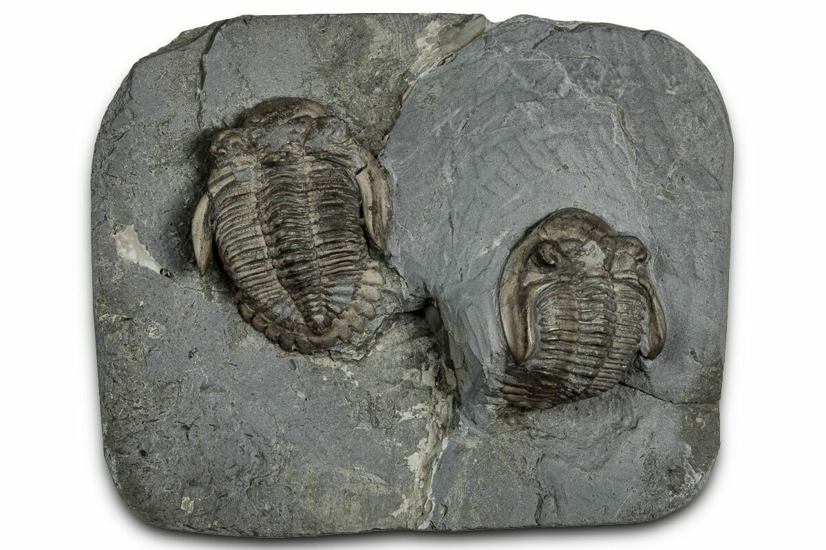 This is a piece of shale containing two detailed Greenops boothi trilobites from the Middle Devonian, Moscow Formation (Windom Shale Member) of Erie County, New York. They were prepared using air abrasives under microscope to expose all of the surface detail.