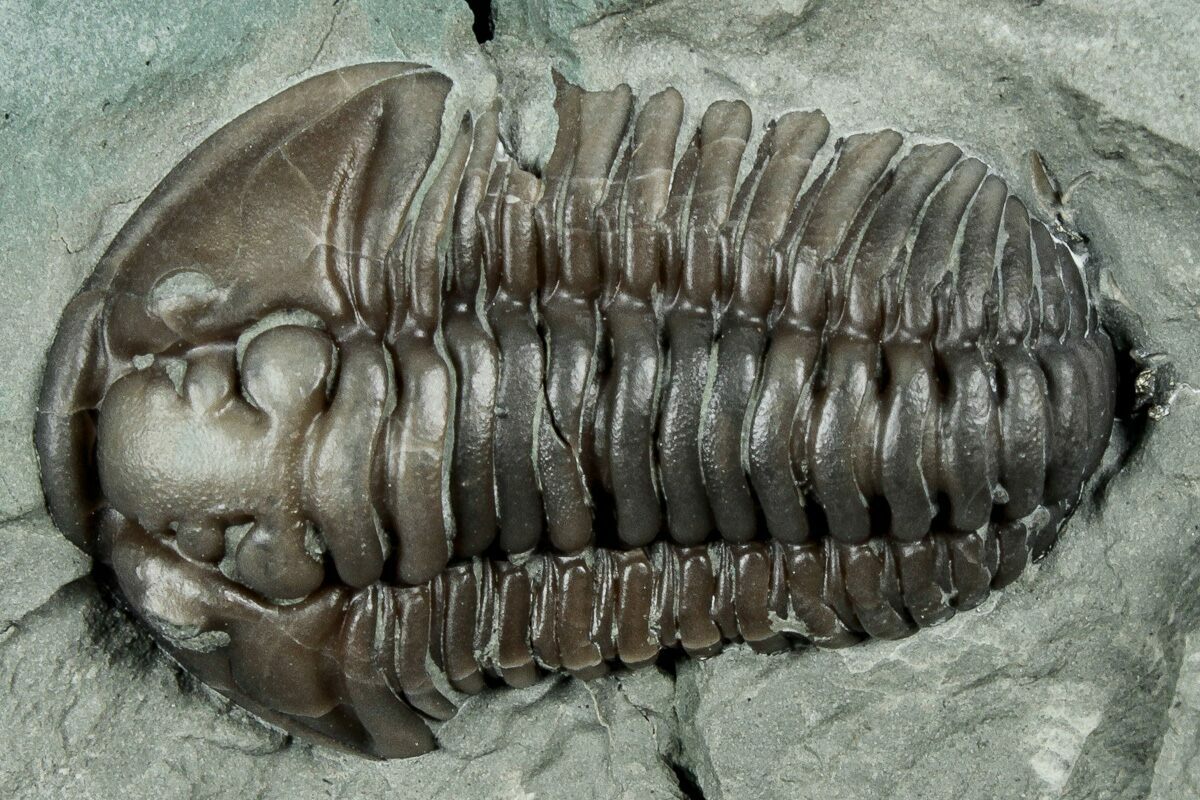 Flexicalymene is often found enrolled, seemingly to protect its softer underside from threats on a sea floor teeming with ancient life and increasingly complex predators. Sealing itself inside the hard carapace may be a protective maneuver, or it may simply be the pose of death.
