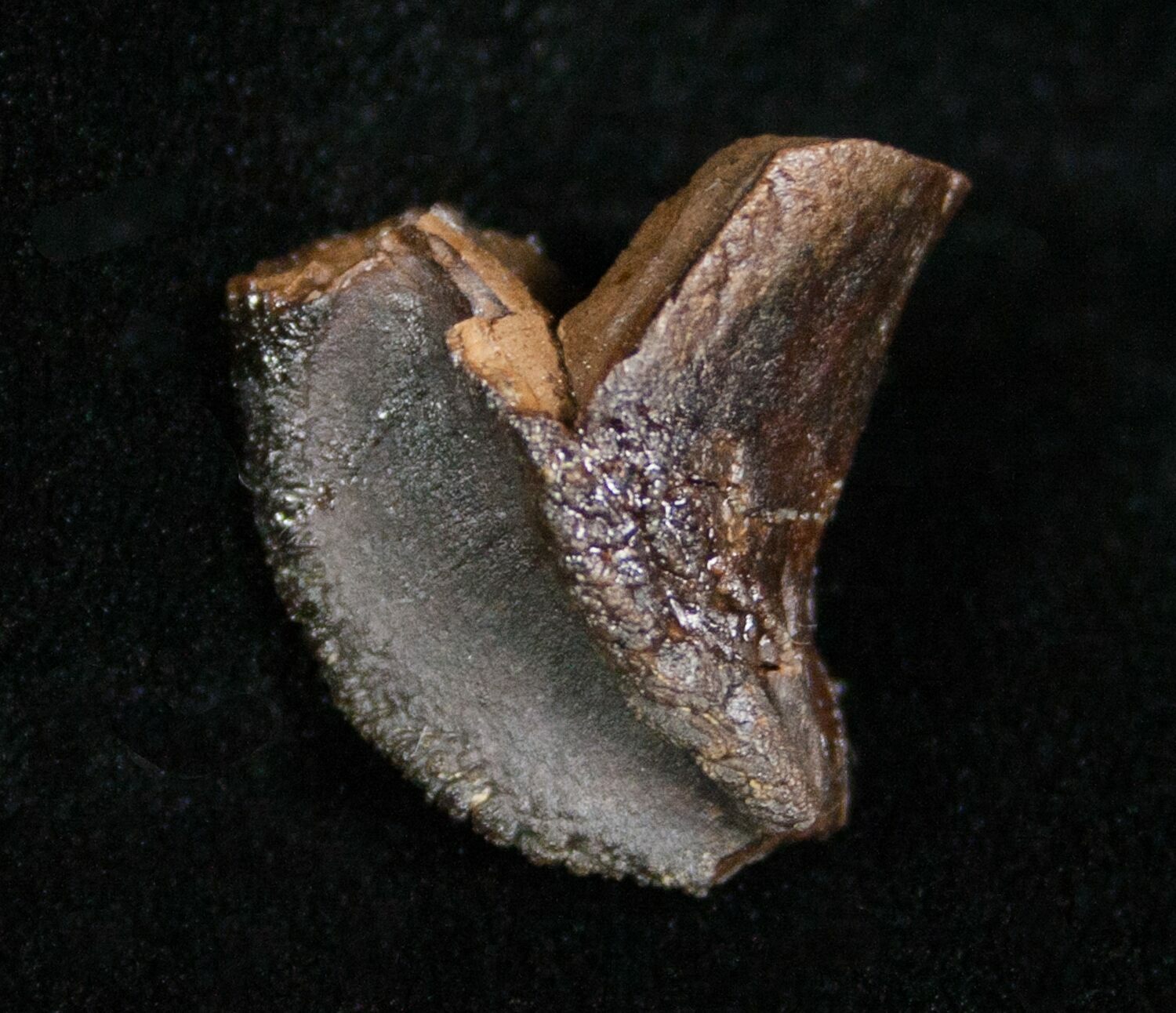 This triceratops tooth crown is unworn. This makes it more uncommon than the teeth shed during the dinosaurs lifetime.