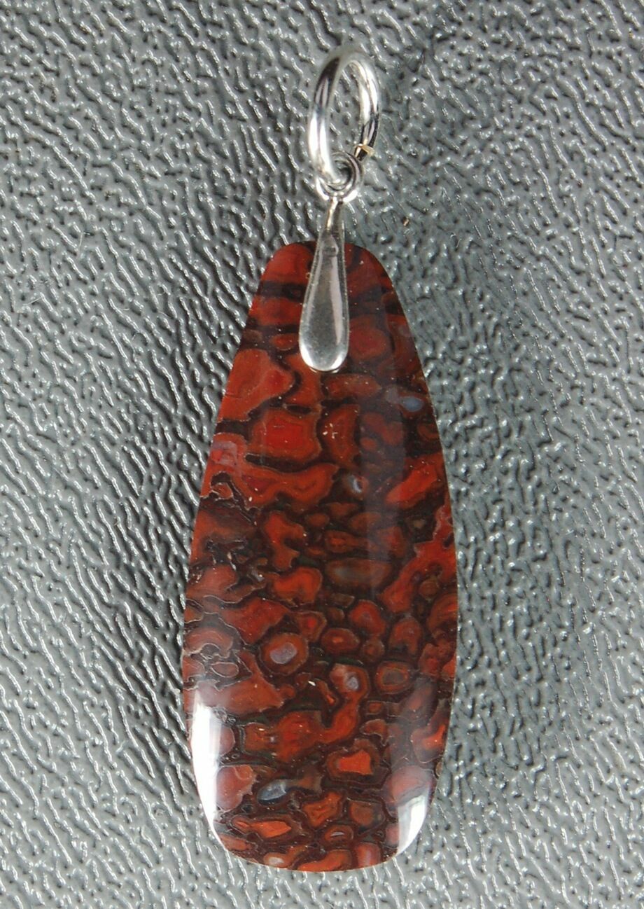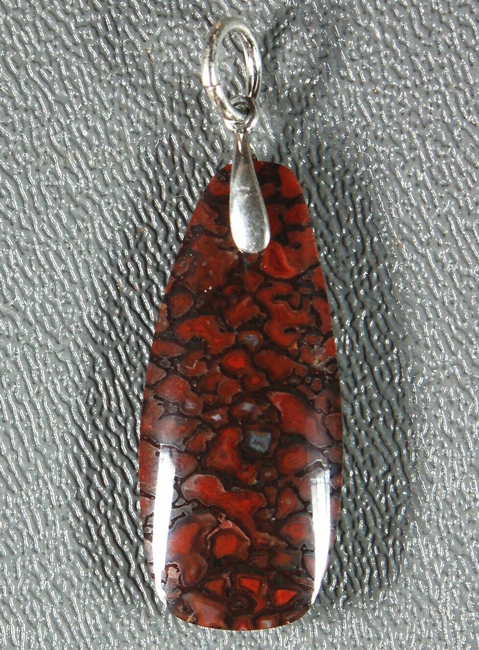 Vibrant, Red Agatized Dinosaur Gembone Pendant