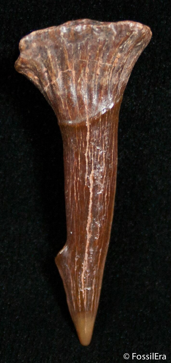 This is a very nice example of a barb/tooth from the extinct giant sawfish Onchopristis numidus. This particular example has much better enamel preservation that most do and also has not been repaired like most.
