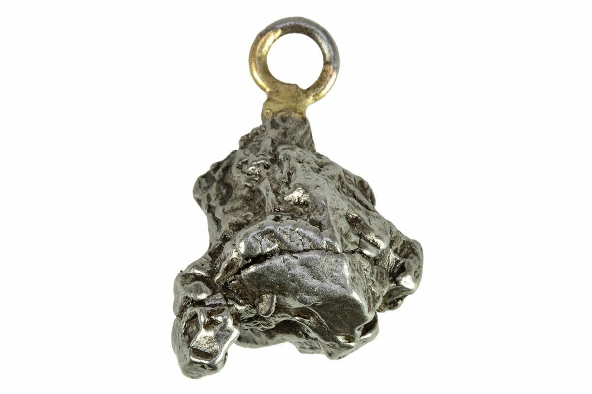 This is an authentic, .6" tall piece of an iron meteorite from the Campo del Cielo fall in Argentina. A metal loop has been attached to the meteorite so your favorite space rock can be displayed around your neck.