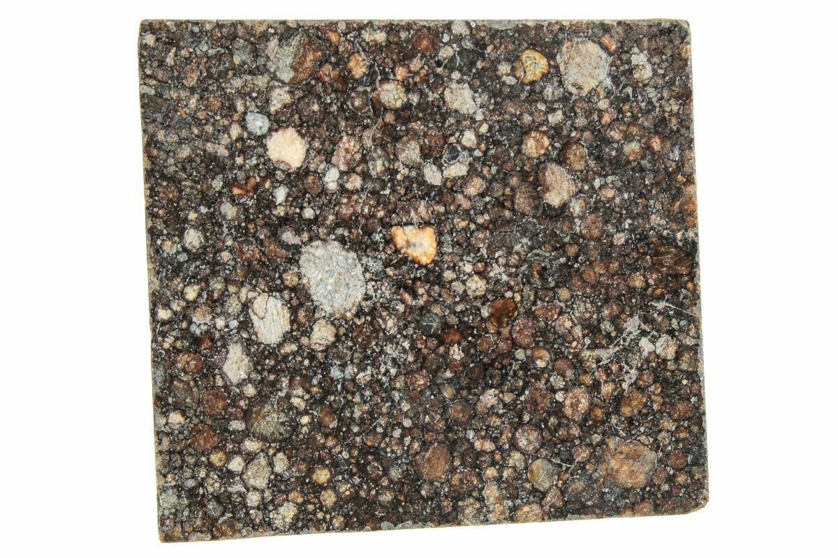 This is a 1.02" wide (6.7 gram) slice of the NWA 15662 ordinary chondrite meteorite. It has been polished on one side to highlight the densely packed grains.