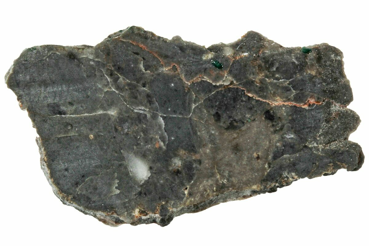 Troctolite is an igneous rock made mostly of olivine and plagioclase, and it forms deep within the lunar crust, representing some of the Moon's earliest rocks. Anorthosite, another igneous rock, is primarily composed of plagioclase feldspar and makes up a significant part of the Moon's highlands, giving them a bright appearance when viewed from Earth. Together, these rock types in brecciated form tell a story of the Moon’s violent past, as impacts shattered and fused these materials, creating rocks that encapsulate pieces of the lunar crust and helping scientists study the early history and formation of the Moon’s surface.