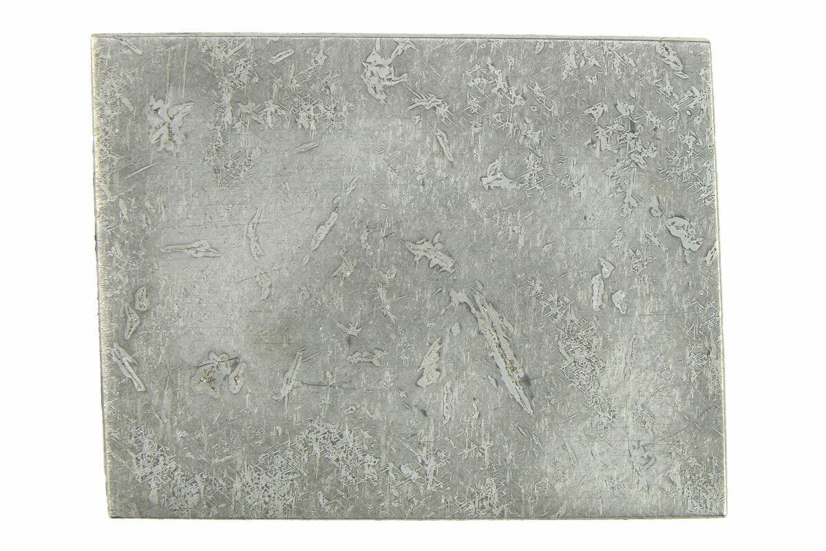 Most iron meteorites have distinctive, geometric patterns called Widmanstätten patterns, which become visible when the meteorite is cut and acid etched. These patterns are criss-crossing bands of the iron-nickel alloys kamacite and taenite that slowly crystalized as the core of the meteorites' parent bodies slowly cooled. Such large alloy crystallizations for mover millions of years and do not occur naturally on Earth, further proving that iron meteorites come from extraterrestrial bodies.