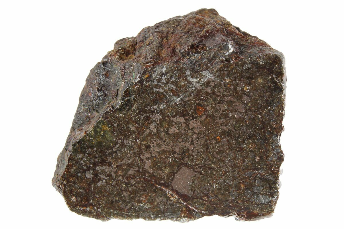 This is a 1.1" wide (9.4 gram) stony-iron mesosiderite meteorite section from the most recent discovery in the strewn field of Vaca Muerta, Chile. This piece has been cut flat and polished on one side revealing the inner metallic inclusions. The rest of the specimen has been left in its rough, natural state.
