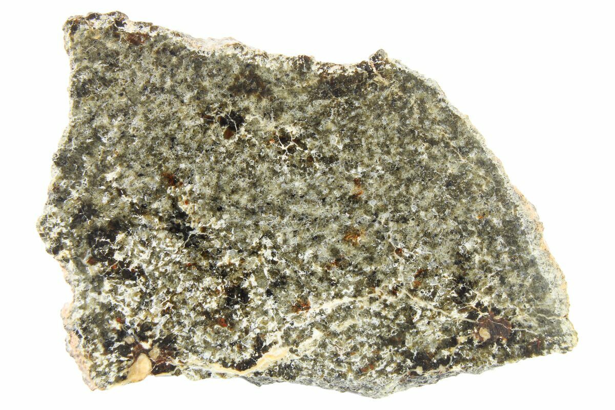 This is a 1.15" wide (3.03 grams) slice of the martian meteorite NWA (14714). It has been nicely cut into a thin slice and polished to a glossy finish on one side.