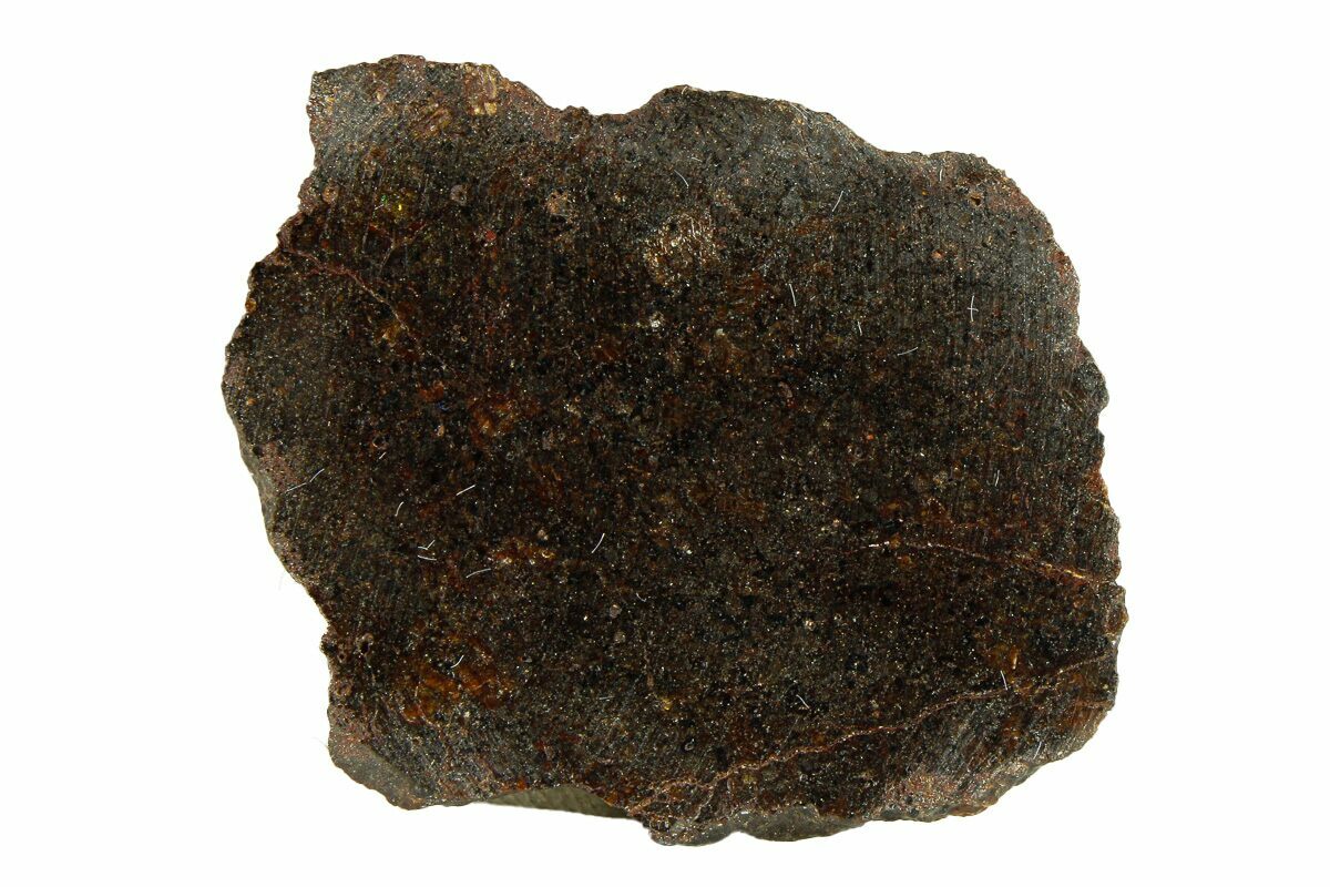 This is a 1.15" wide, 7.03-gram polished endcut of the Rafsa 005 angrite meteorite that was collected in Algeria in 2023. It has a gorgeous red-brown coloration, displayed beautifully on its glossy polished surface. It comes in an acrylic display case.