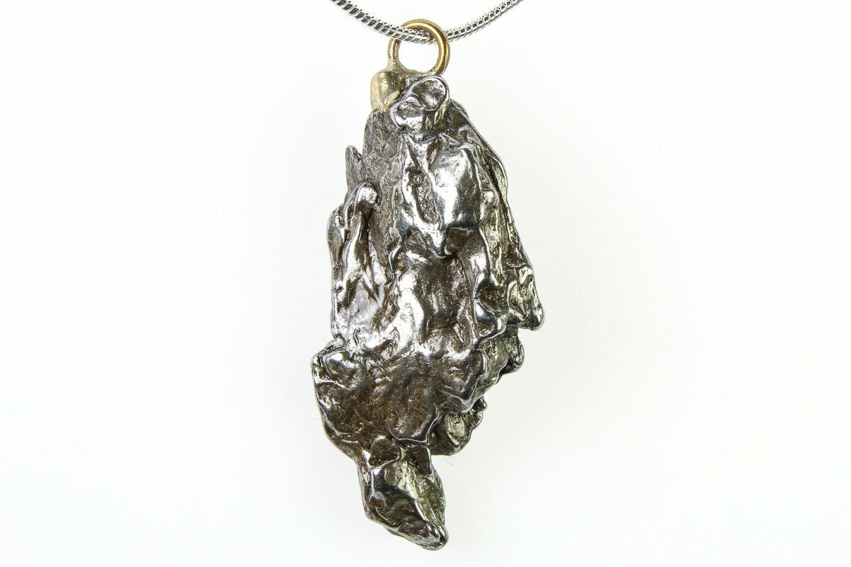 This is an authentic, 1.35" long piece of an iron meteorite from the Campo del Cielo fall in Argentina. A metal loop has been attached to the meteorite so your favorite space rock can be displayed around your neck.