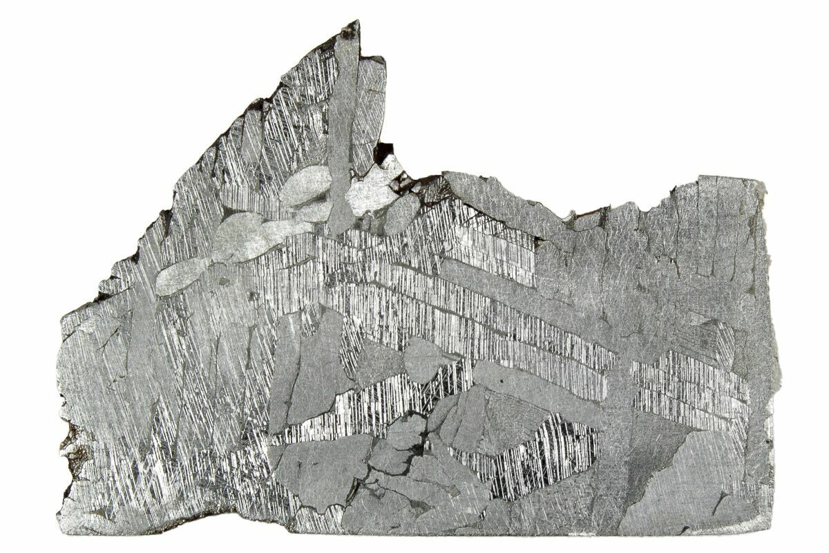 Most iron meteorites have distinctive, geometric patterns called Widmanstätten patterns, which become visible when the meteorite is cut and acid etched. These patterns are criss-crossing bands of the iron-nickel alloys kamacite and taenite that slowly crystalized as the core of the meteorites' parent bodies slowly cooled. Such large alloy crystallizations for mover millions of years and do not occur naturally on Earth, further proving that iron meteorites come from extraterrestrial bodies.